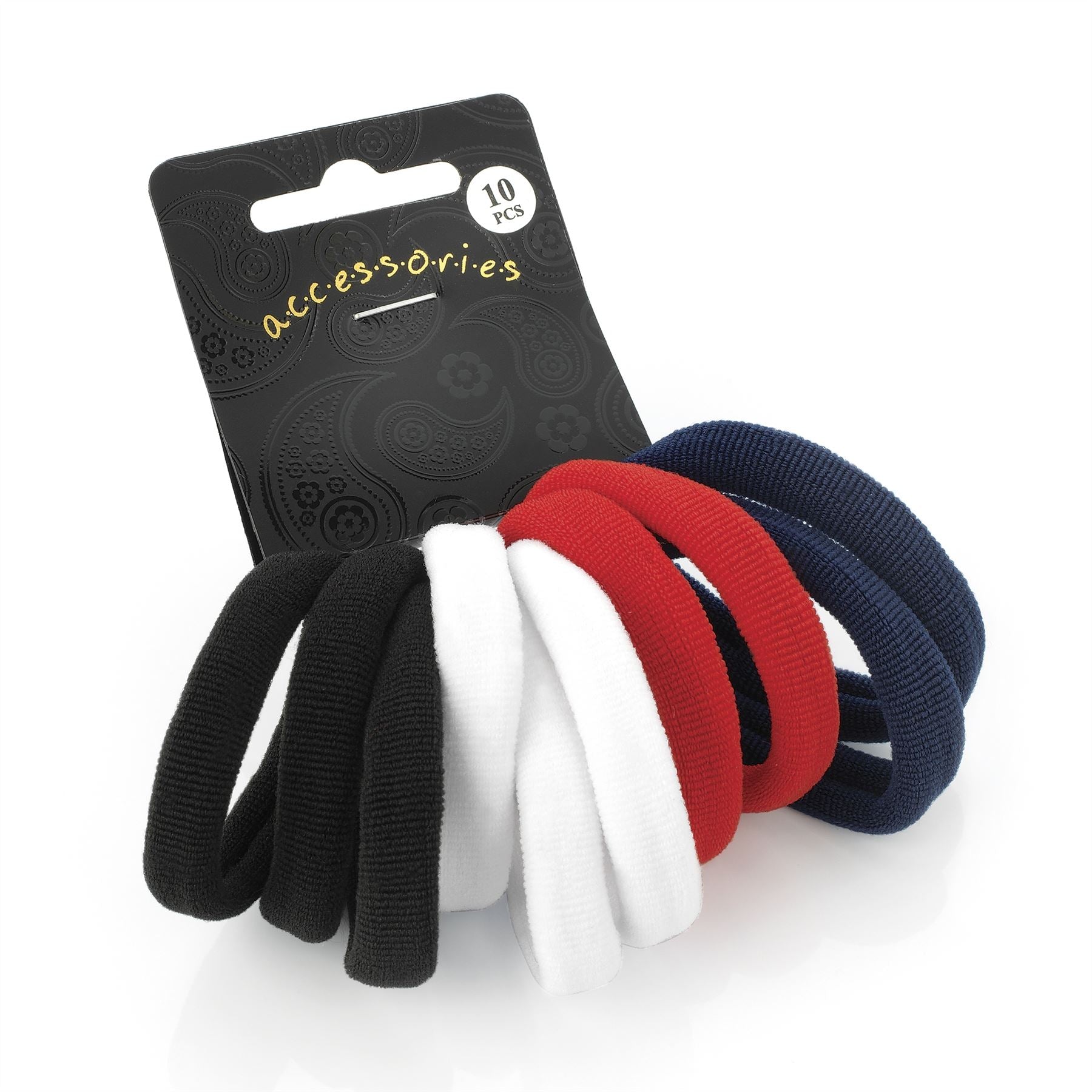 10 Black White Red Navy Soft Endless No Metal Hair Bobbles Elastics Bands
