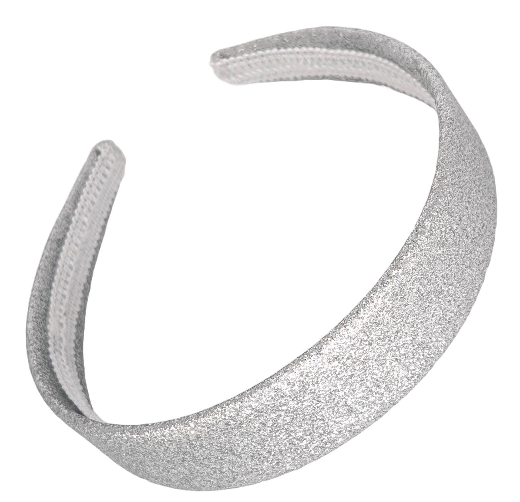 2.5cm Silver Glitter Fabric Plastic Alice Band Hair Band Headband No Teeth