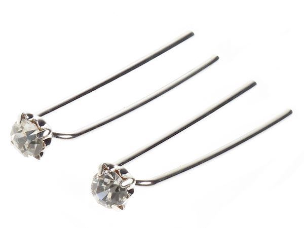 2 Crystal Solitaire Hair Pins Grips Slides Wedding Prom Bridal Bridesmaid