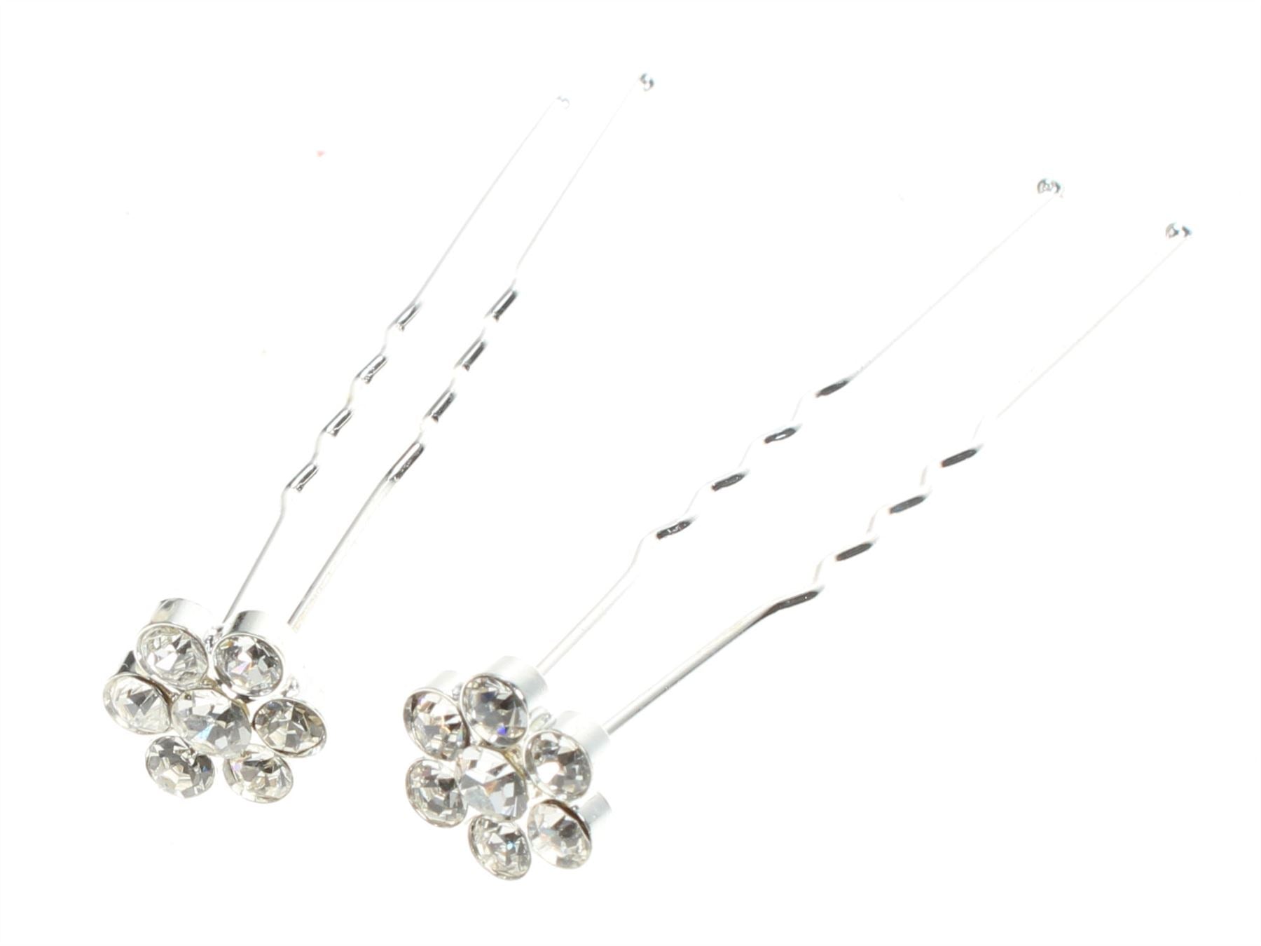 2 x Crystal Daisy Cluster Flower Hair Pins Wedding Prom Bridal Bridesmaid
