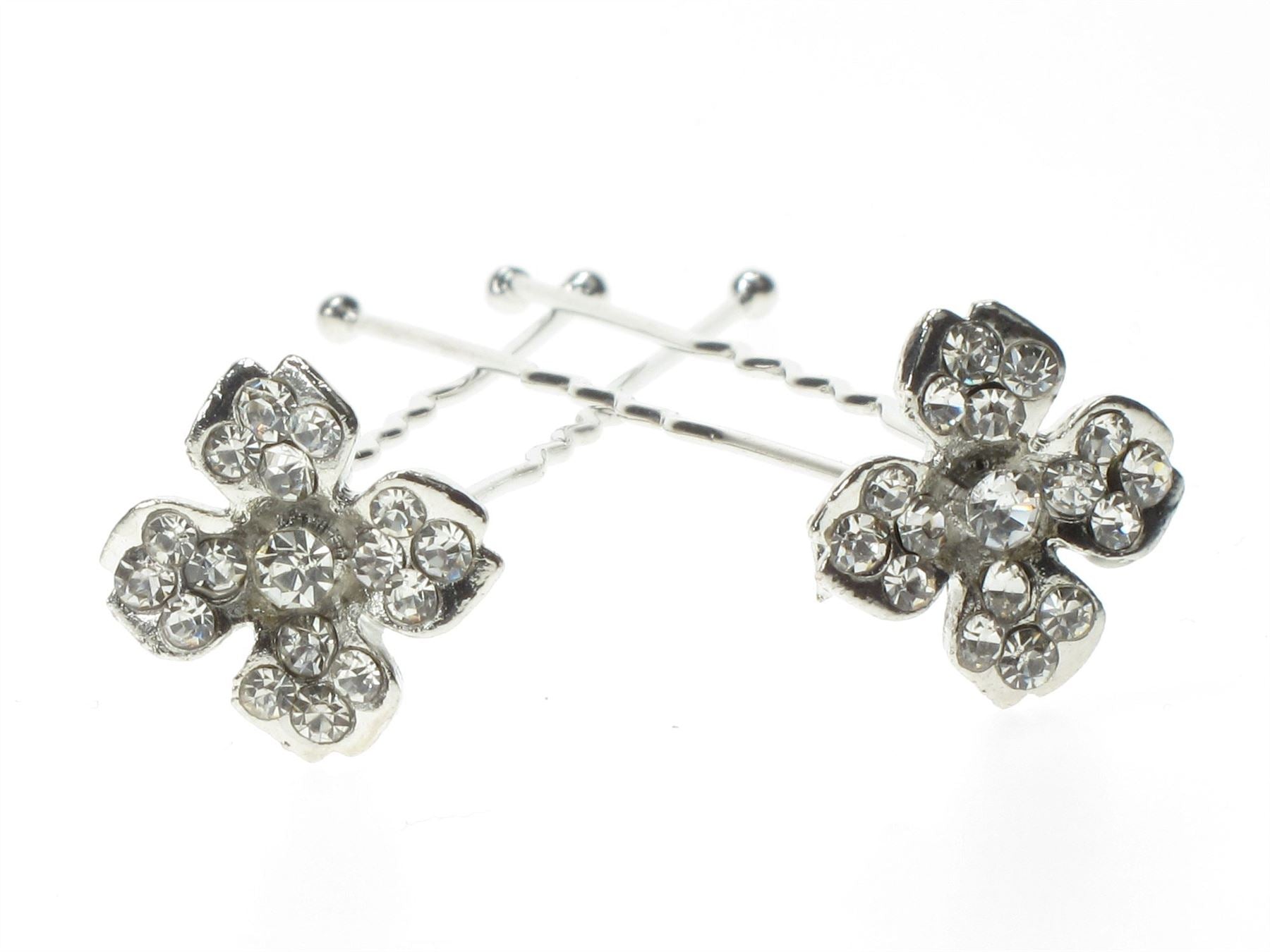 2 x Silver Clear Crystal Flower Daisy Hair Pins Wedding Bride Prom Bridesmaid