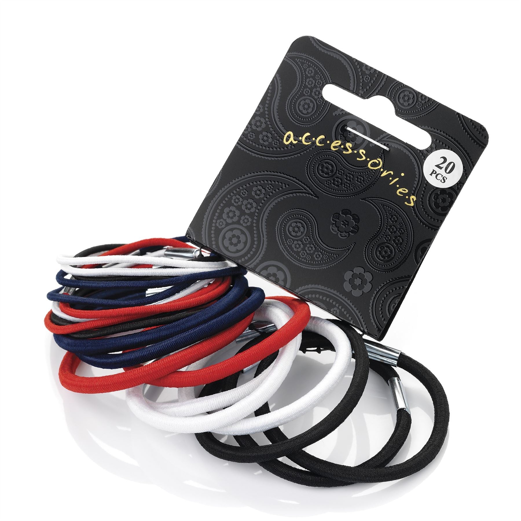 With our 20 Black, Navy, Red, and White Thick and Thin Hair Elastics, you'll have the perfect accessory to keep your hair in place while looking fabulous!
