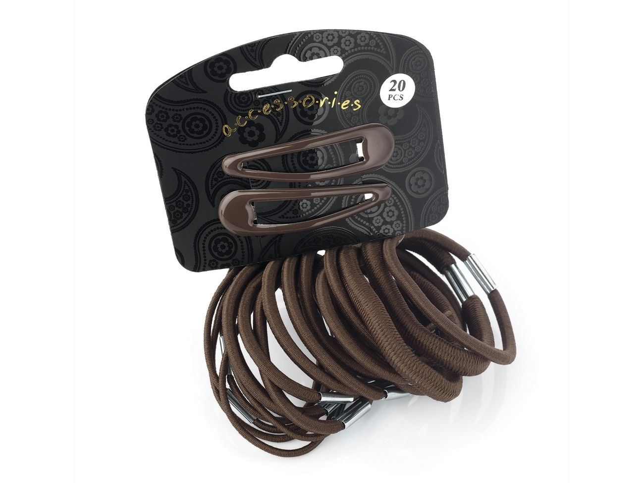 20 Piece Brown Hair Elastic Band Bobble Snap Hair Clip Slide Girls School
