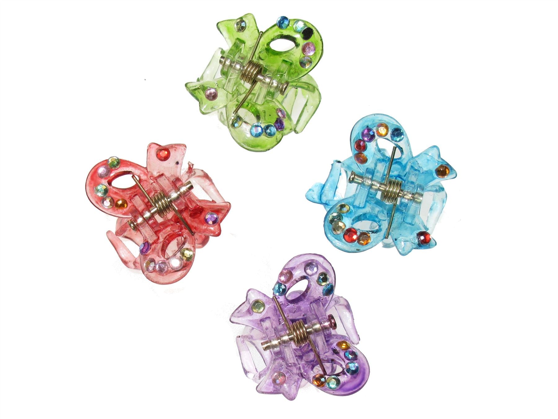4 Small Mini 2cm Blue Green Red Purple Plastic Bow Hair Claws Clips Clamps