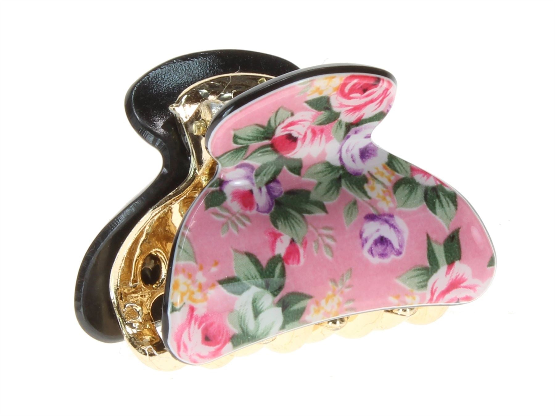 4cm Small Pink Ditsy Rose Acrylic Plastic Hair Claw Clip Clamp Bulldog Clip
