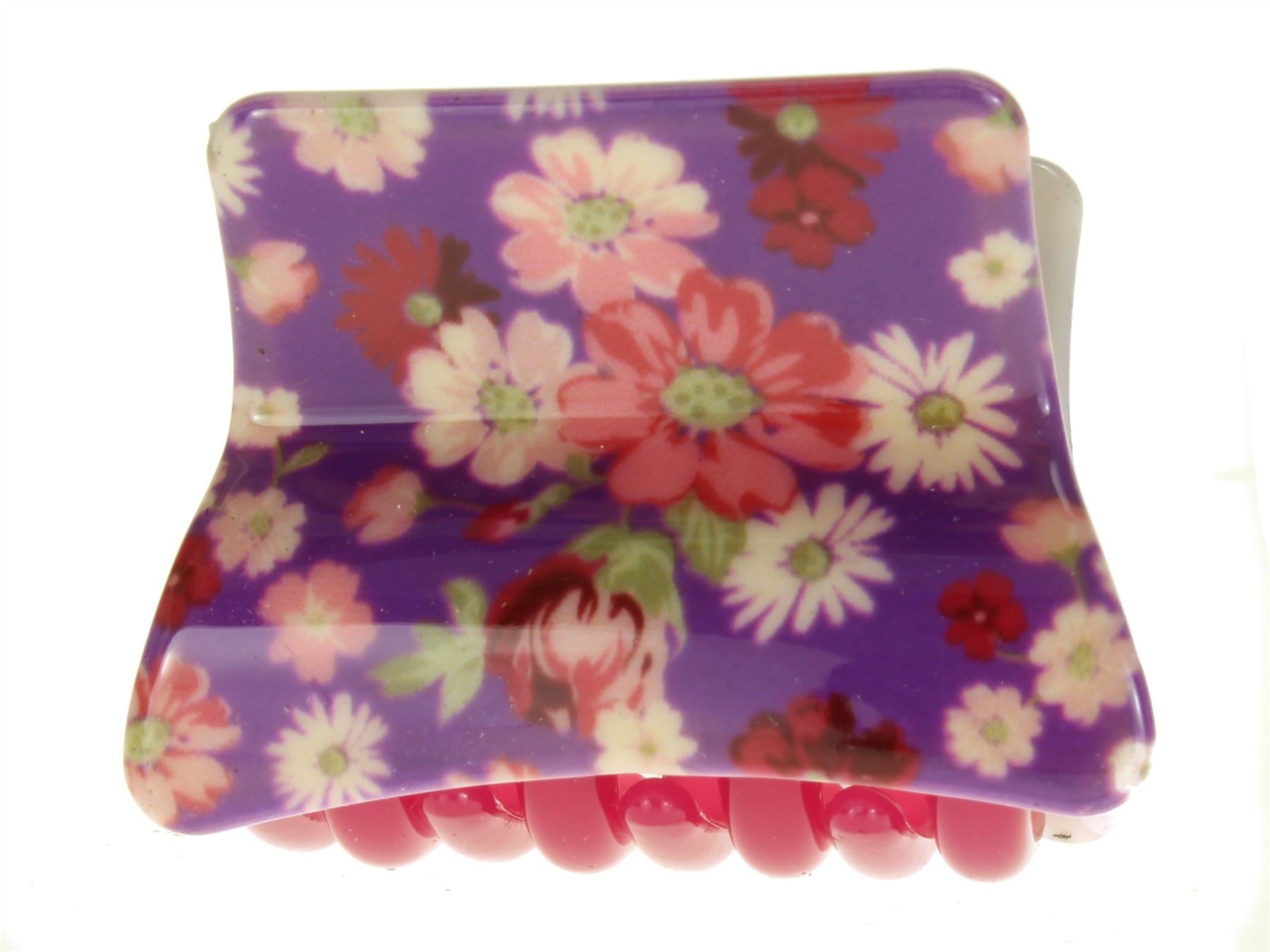 4cm Small Purple Ditsy Daisy Acrylic Plastic Hair Claw Clamp Bulldog Clip