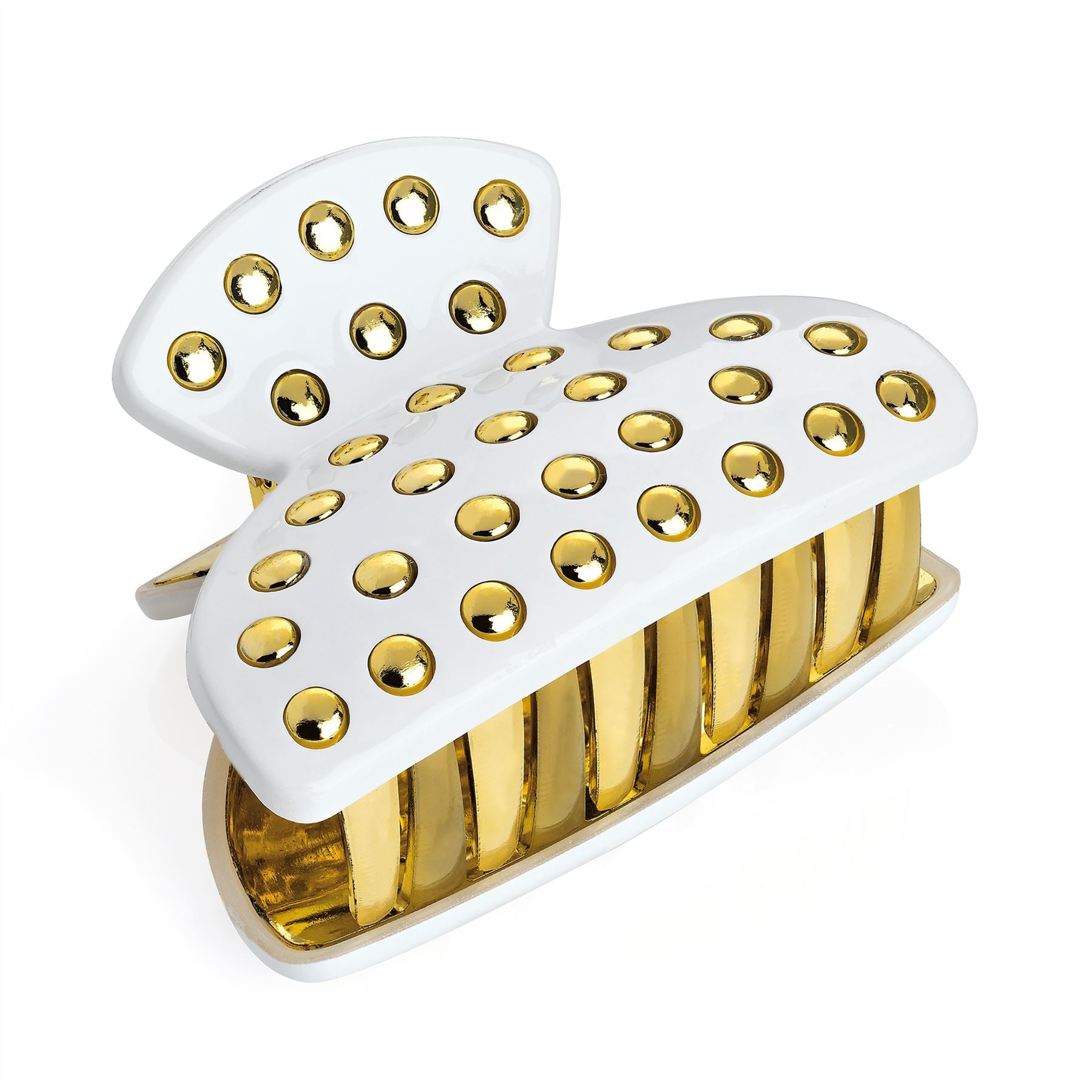6.5cm White Gold Studded Spot Dot Chunky Plastic Hair Claw Clip Hair Clamp