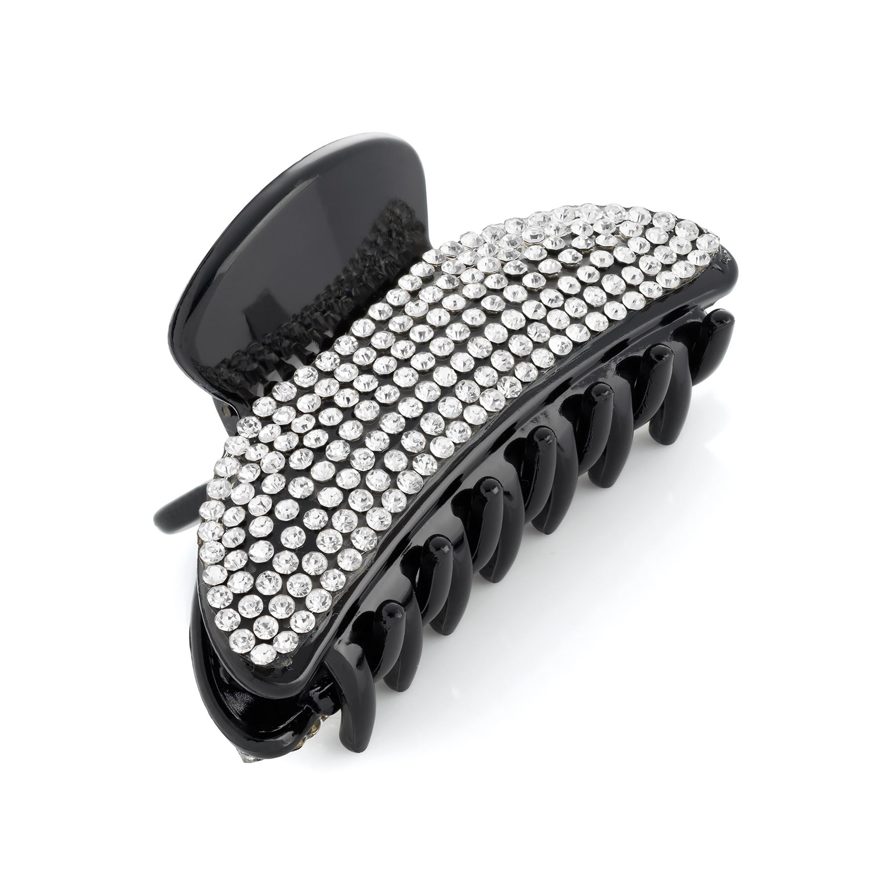 Elevate your hairstyle with our stylish Hair Claw Clip. This black plastic clip features a glossy finish and a stunning crystal-studded design, perfect for making a statement.