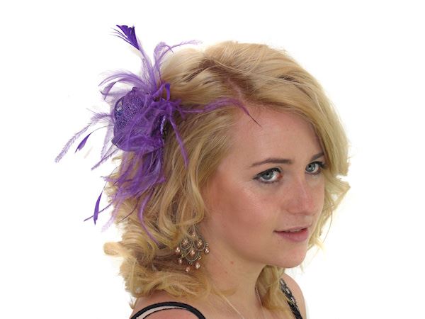 Amethyst Purple Rose Feather Hair Comb Slide Hat Fascinator Wedding Races