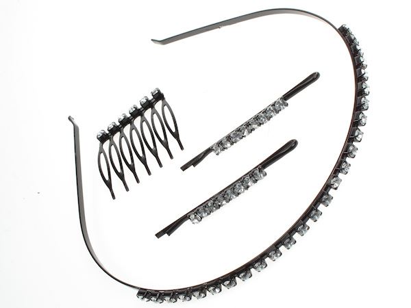 Elegant Black Crystal Hair Accessories Set