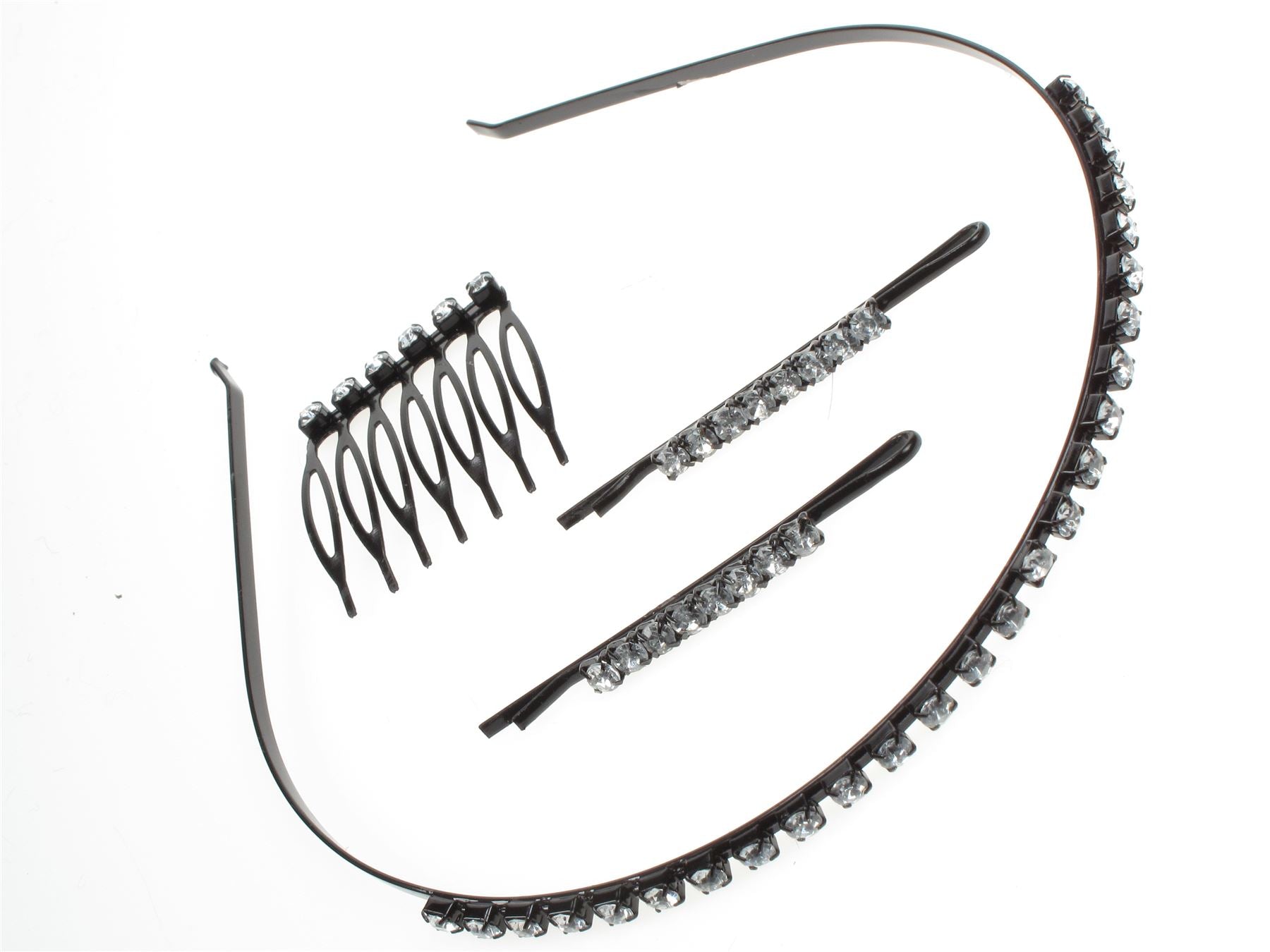 Black Crystal Narrow Slim Thin Wire Hairband Hair Comb Hair Slides Clips