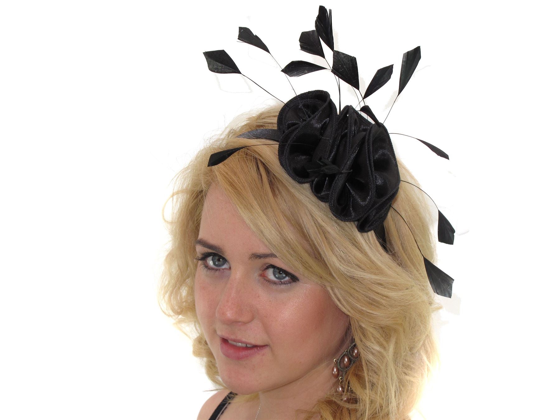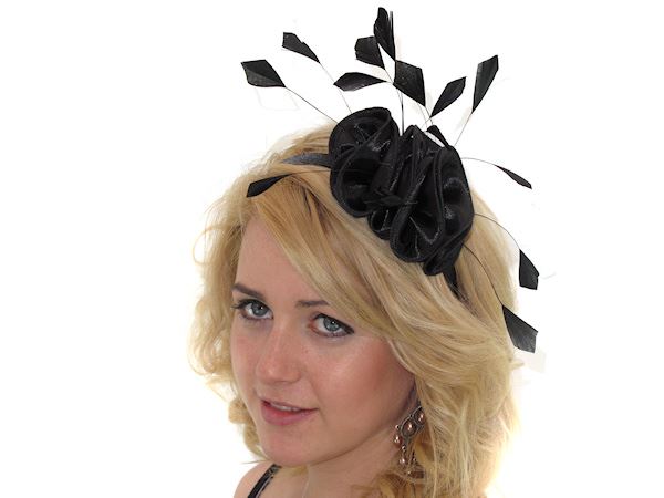 Black Satin Ruffle Feather Head Band Hair Band Fascinator HatRaces