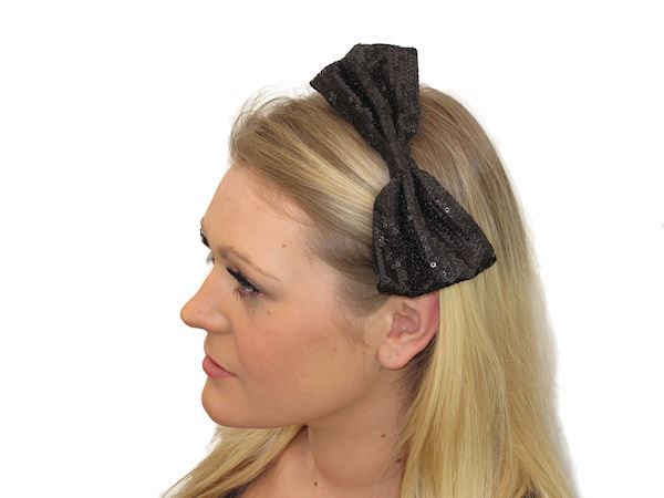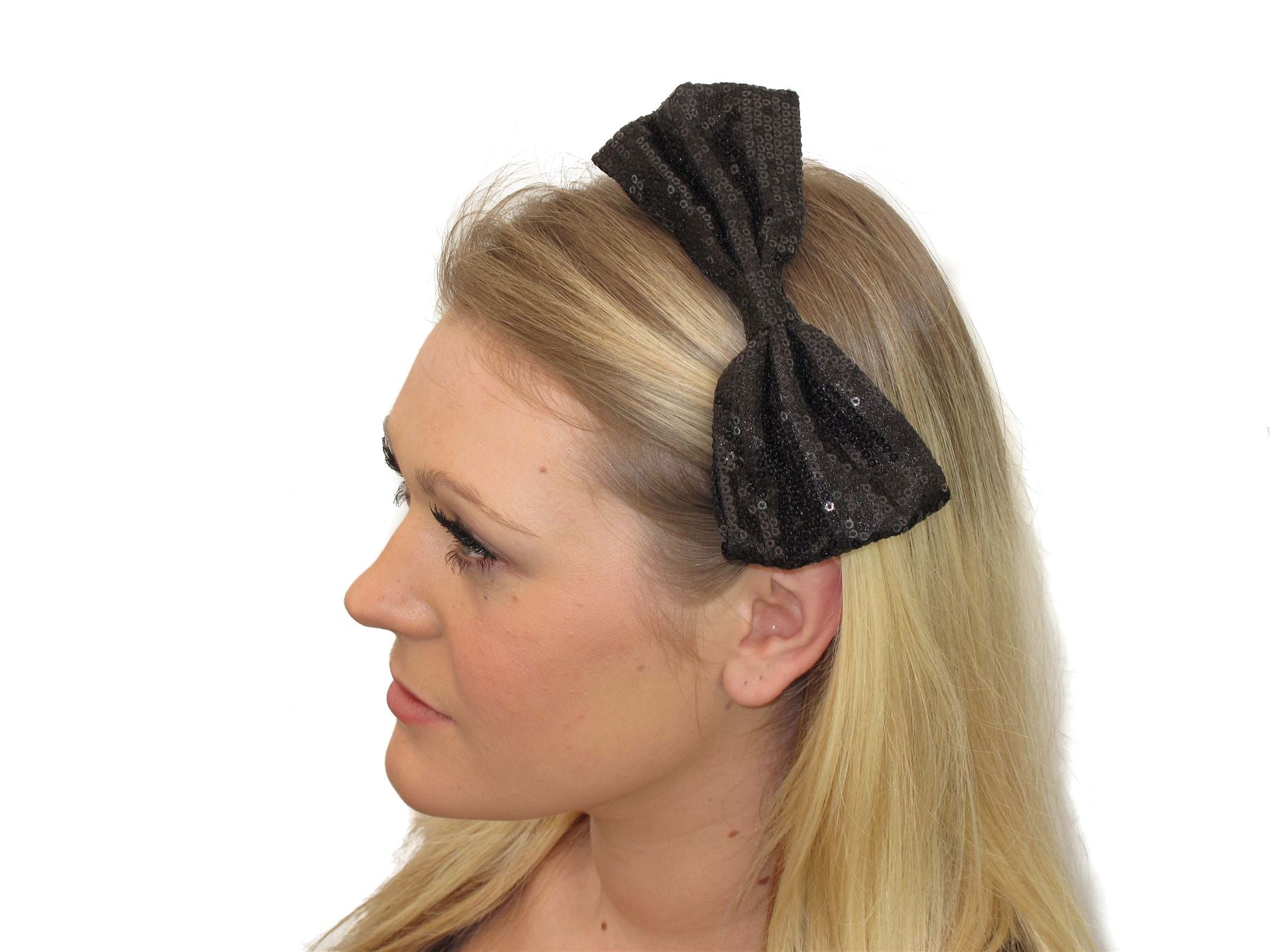 Black Sequin Large Big Bow Hair Band Head Band FascinatorRaces Party