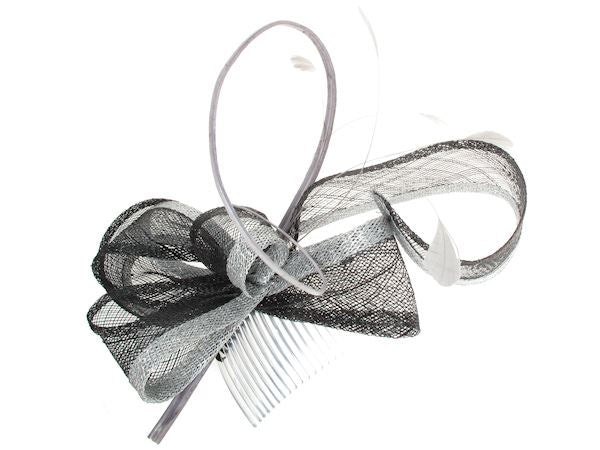 Black Silver Grey Two Tone Loop Quill Feather Hair Comb Fascinator Races