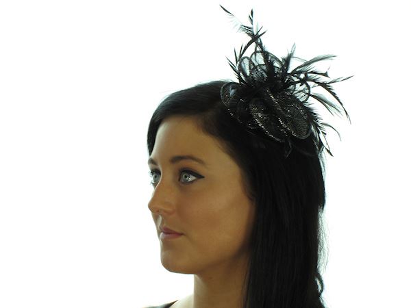 Black Silver Lurex Flower Feather Hair Comb Slide Hat Fascinator Races