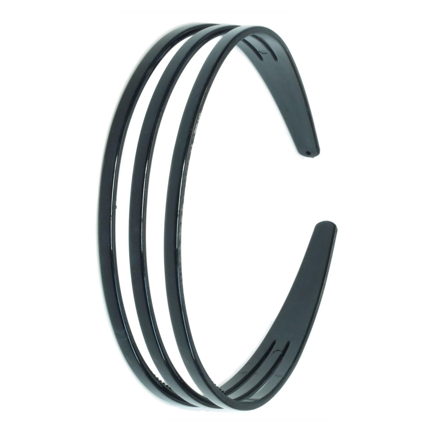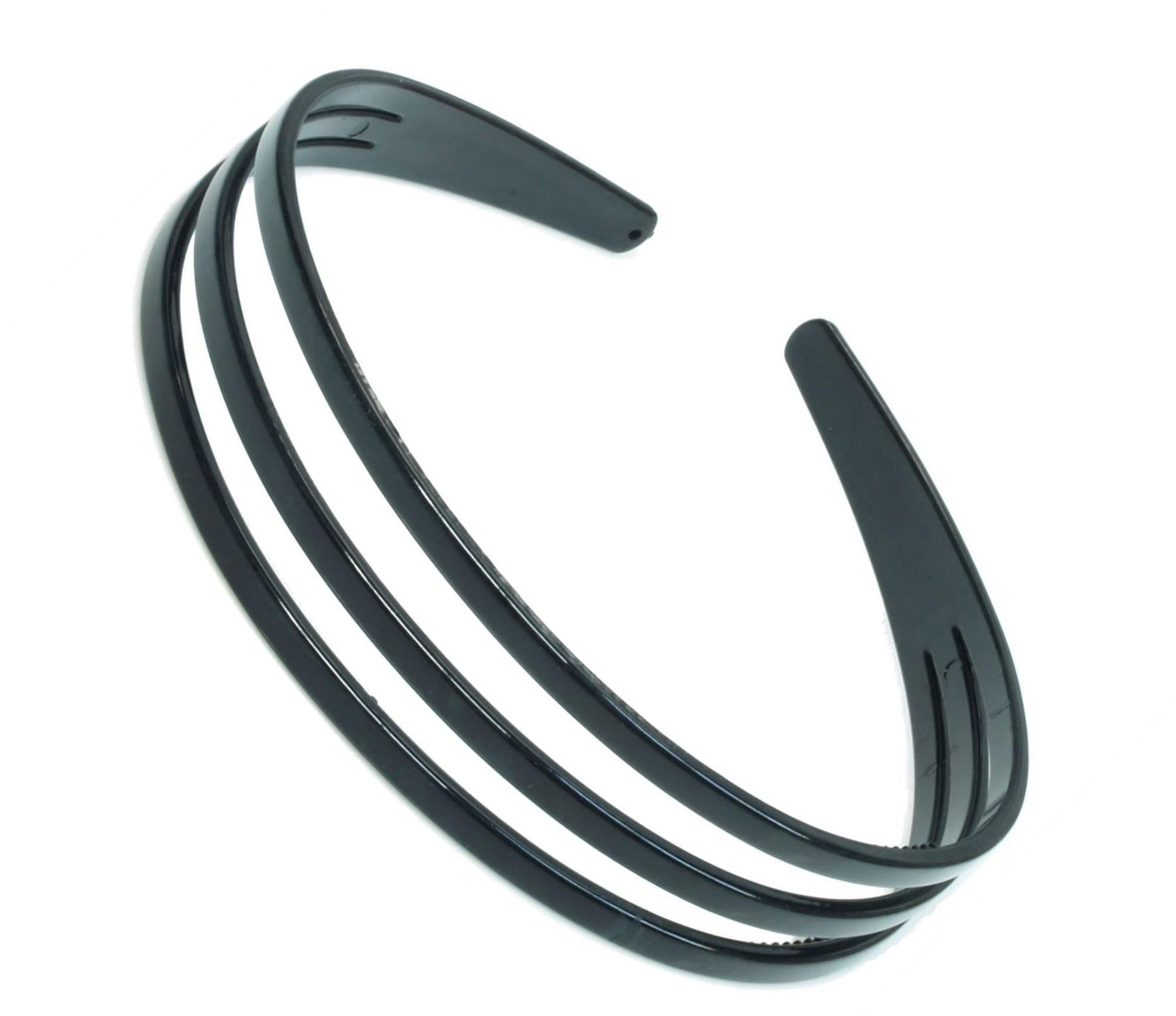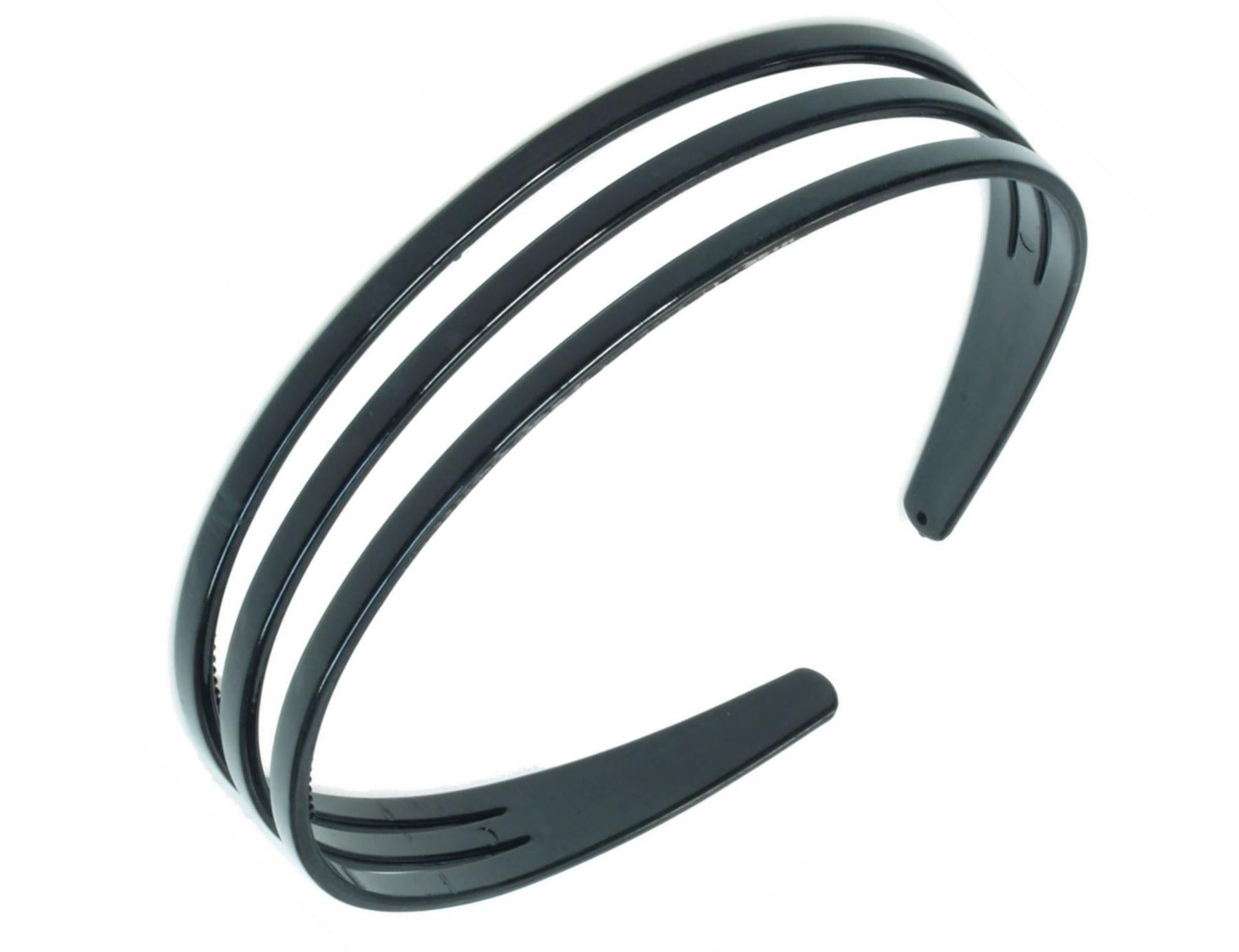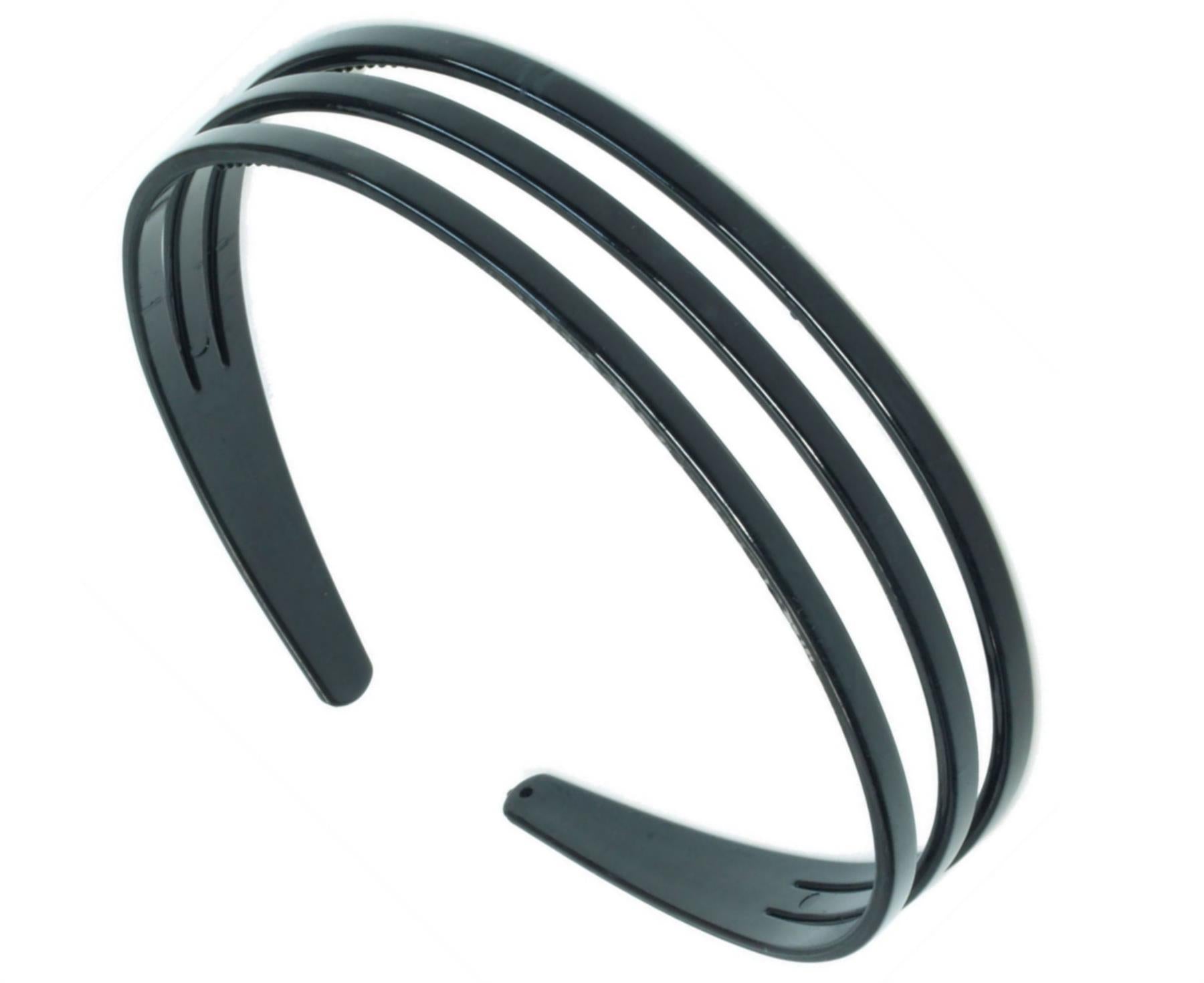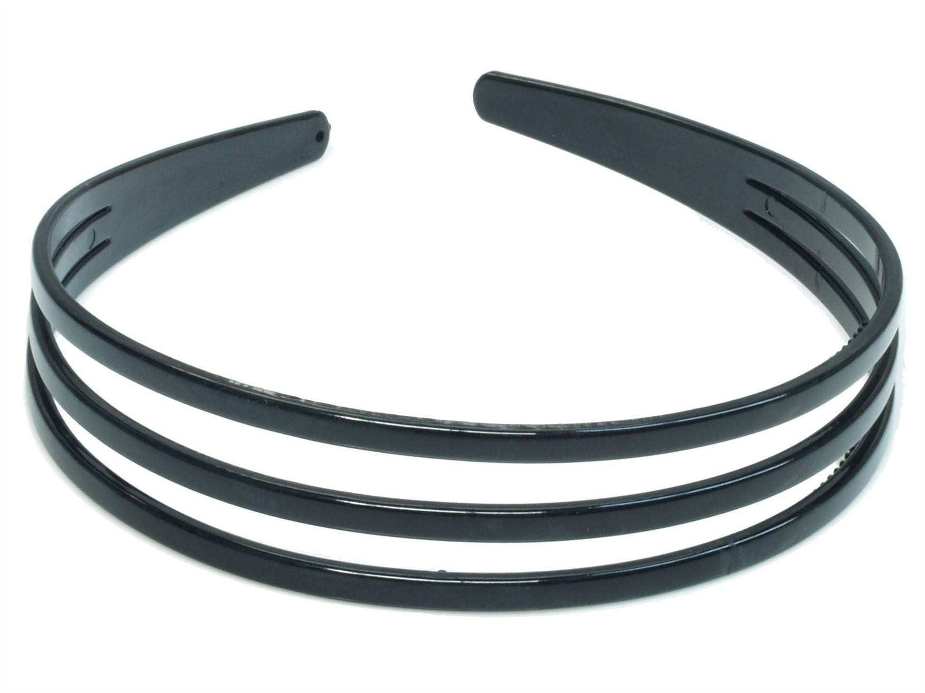 Black Triple 3 Row Plastic Alice Band Hair Band Headband With Grip