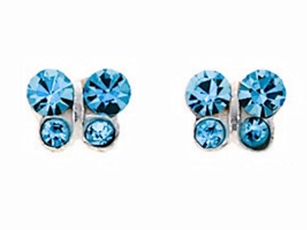 Blue Crystal Butterfly Stud Earrings Ladies Women Jewellery