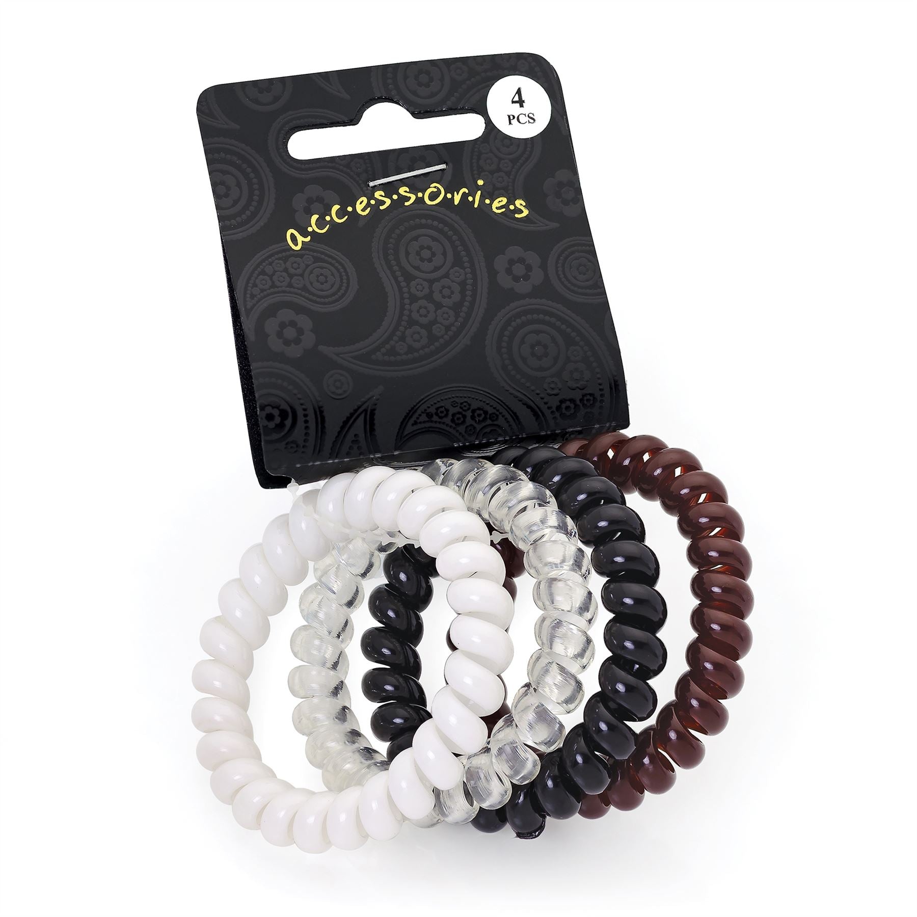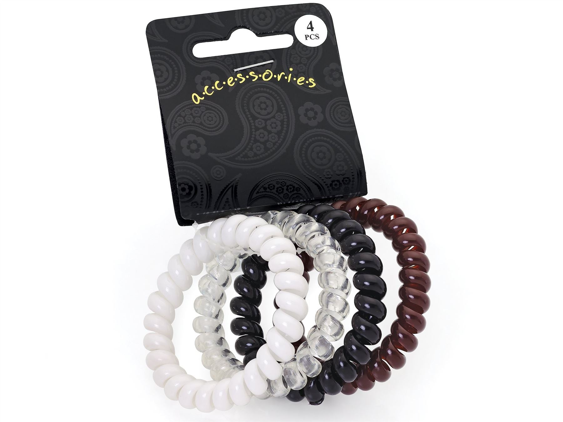 Introducing our pack of 4 telephone coil elastic scrunchie hair bobbles, designed to keep your hair looking fabulous while being kind to your strands.
