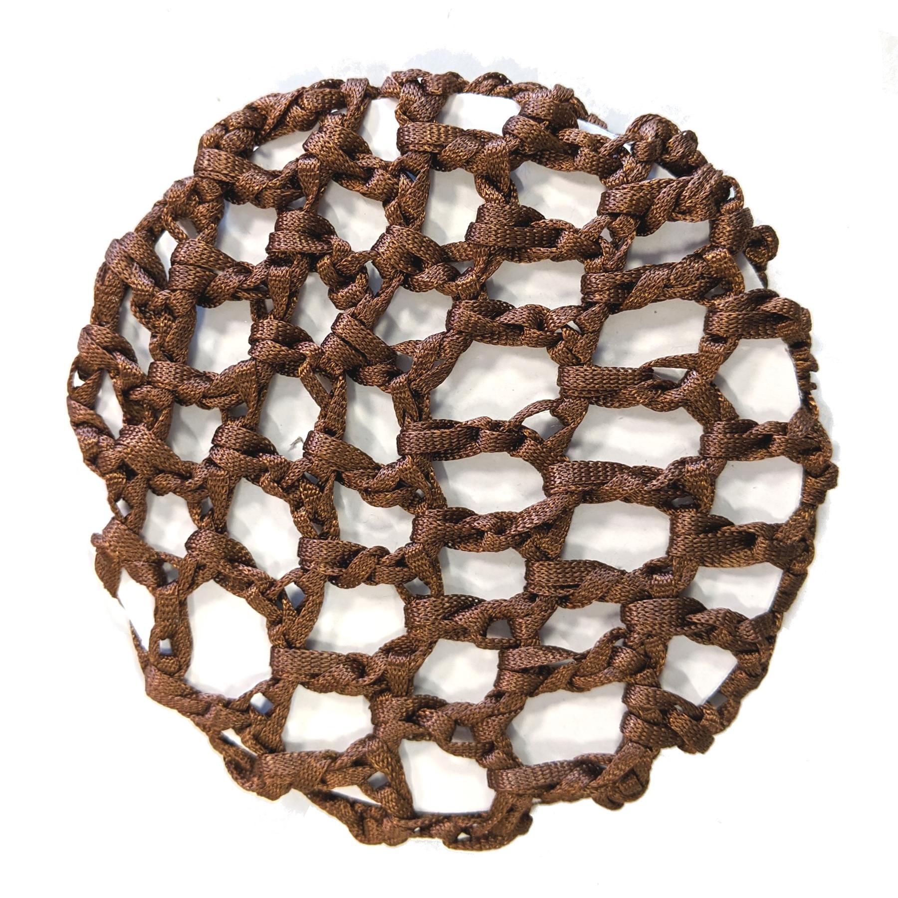 Brown Ribbon Knot Crochet Bun Elasticated Hair Net Ballet Dance Gymnastics