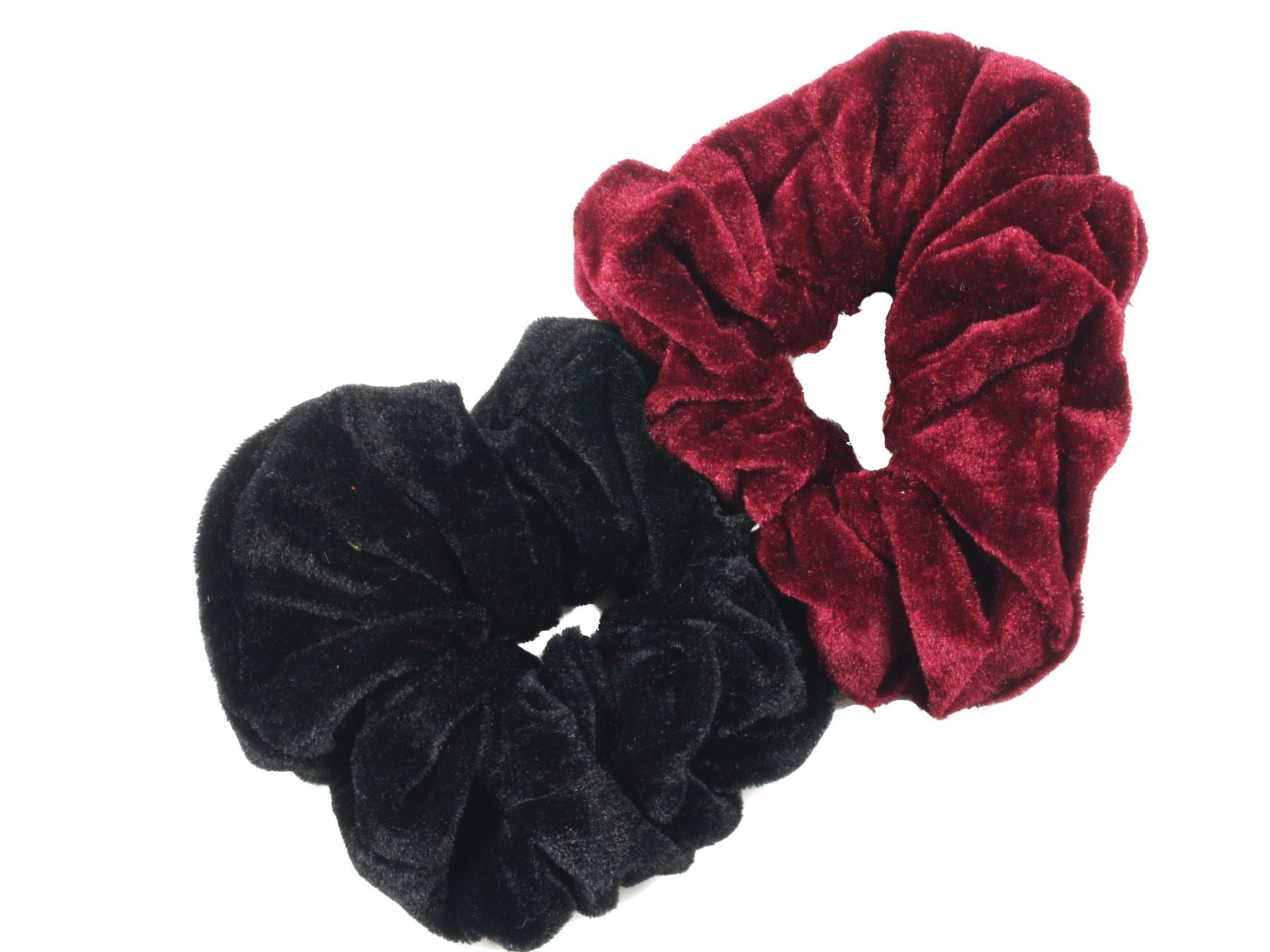 This pack includes one beautiful burgundy scrunchie and one classic black scrunchie, perfect for any occasion.