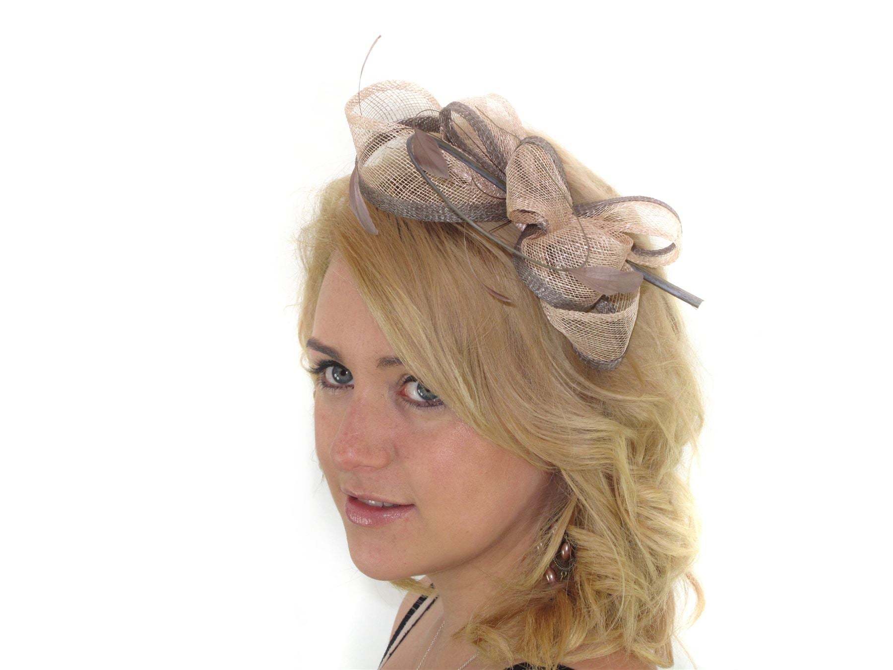 Coffee Brown Two Tone Loop Quill Feather Hair Comb Fascinator Wedding Races