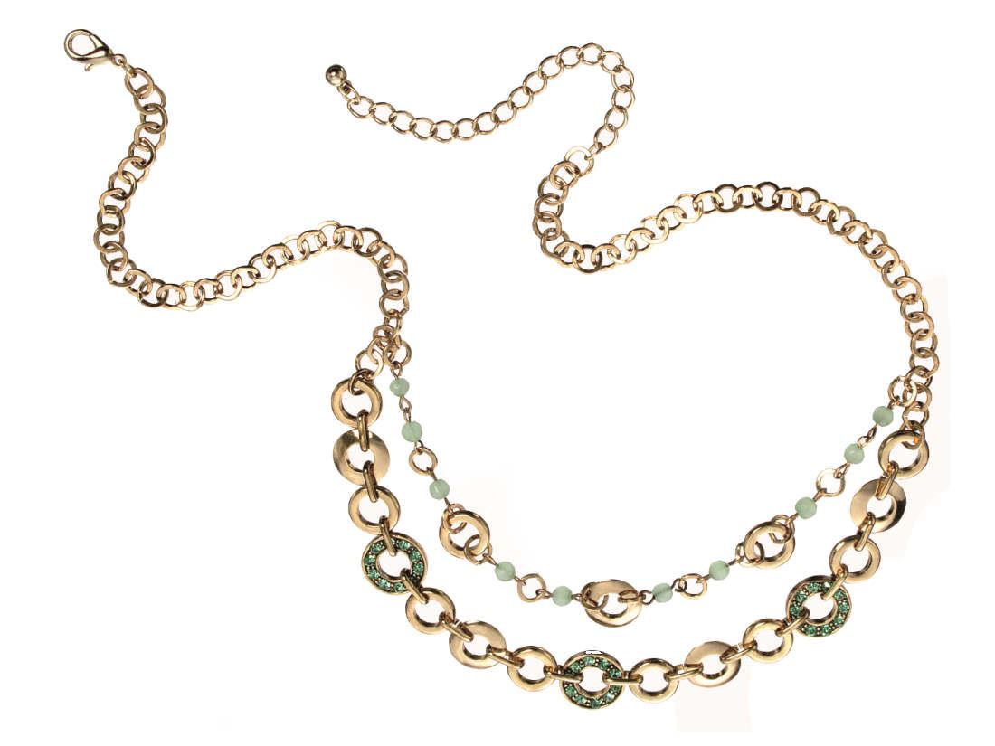 This unusual high-quality crystal necklace is not just a piece of jewelry; it's a statement. With its aged effect gold-colored double chain and exquisite craftsmanship, it's the perfect blend of elegance and modern style. Whether you're treating yourself or looking for a memorable gift, this necklace is sure to impress.