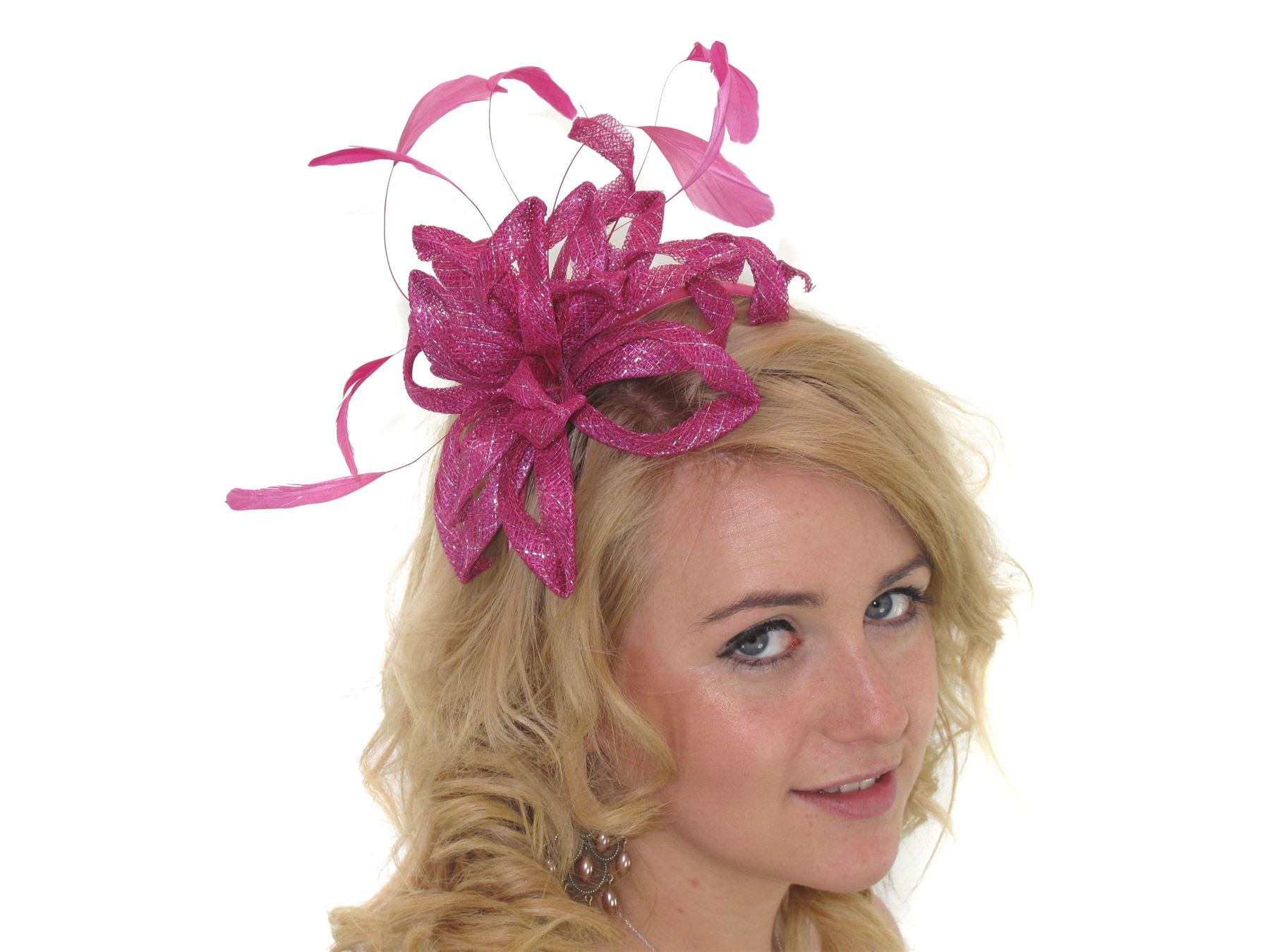 Fuchsia Pink Silver Lurex Feather Hair Band Headband Fascinator Races