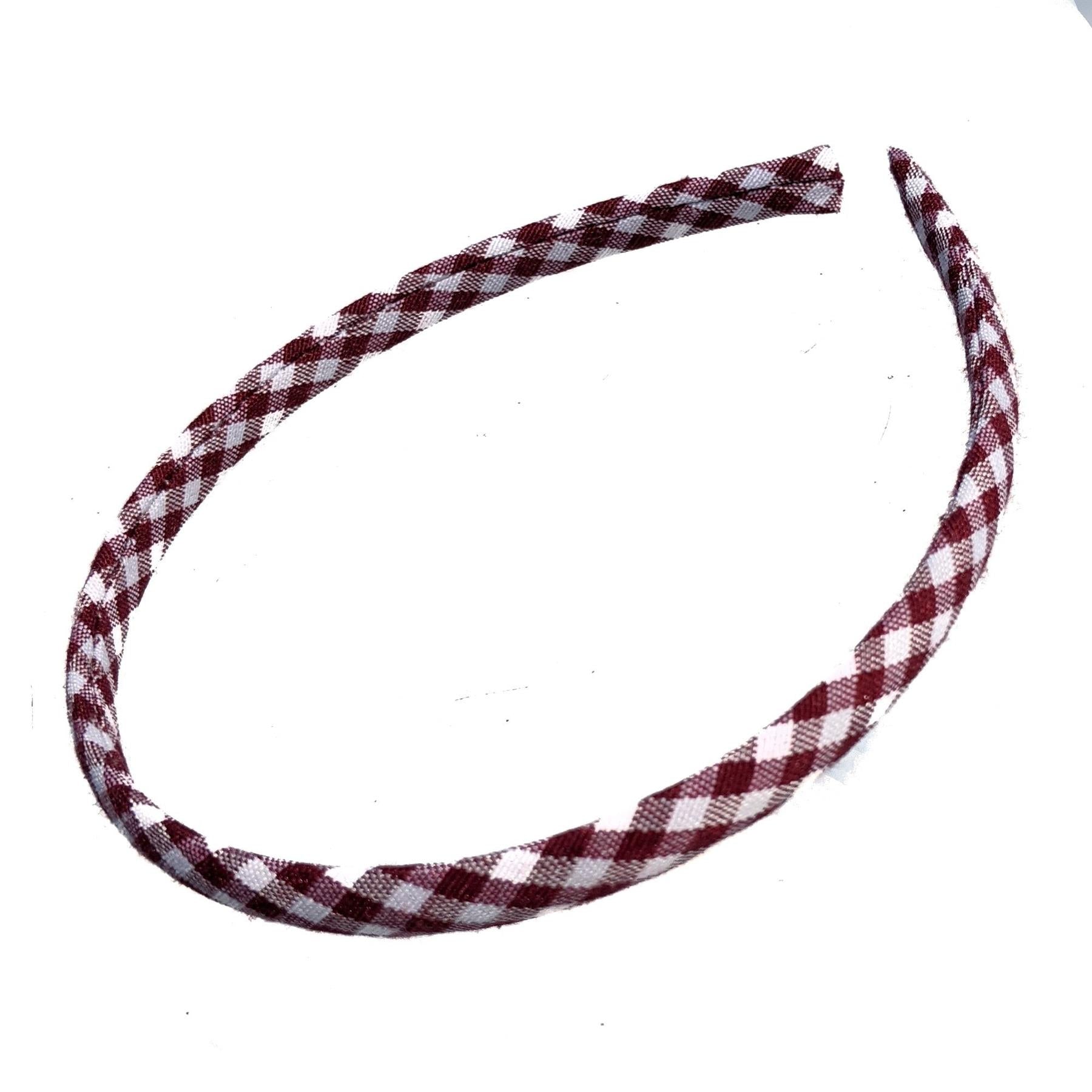 Girls 1cm Burgundy Gingham Plastic Hair Band School Headband No Teeth