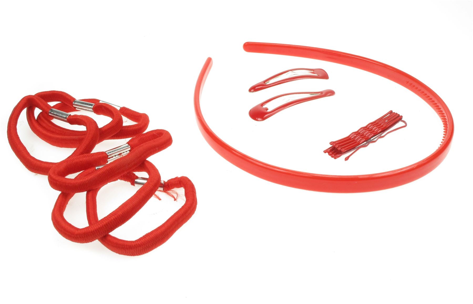 This delightful hair band set in a vibrant red color is perfect for school days. It includes everything you need to keep your hair neat and stylish while you learn and play!