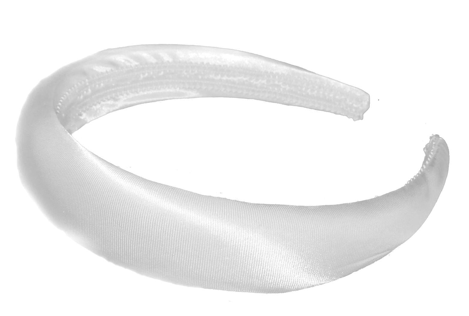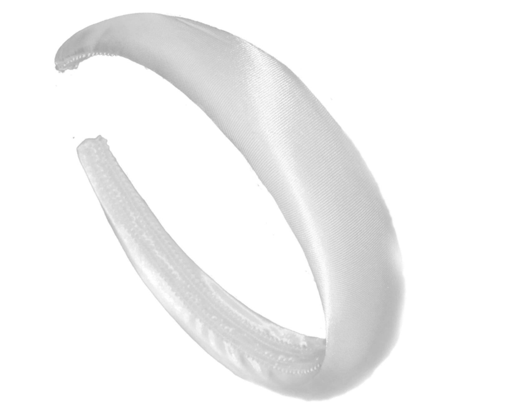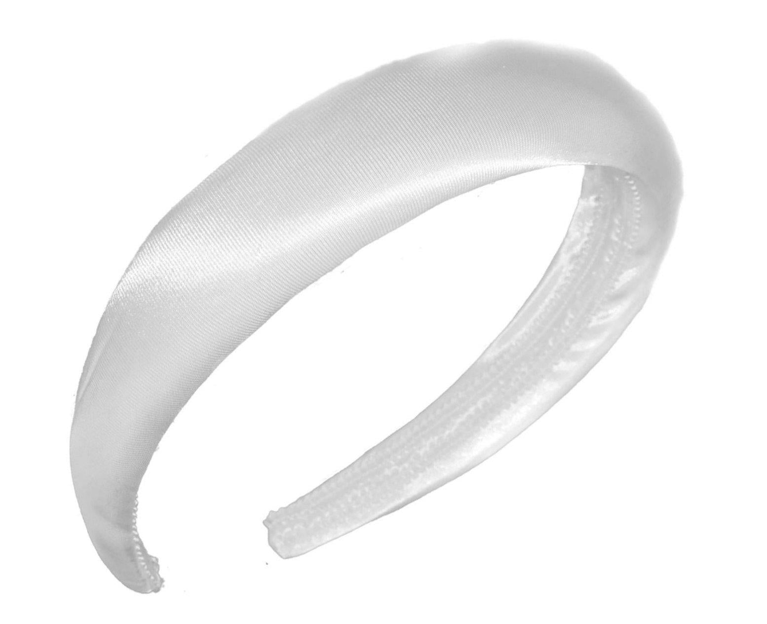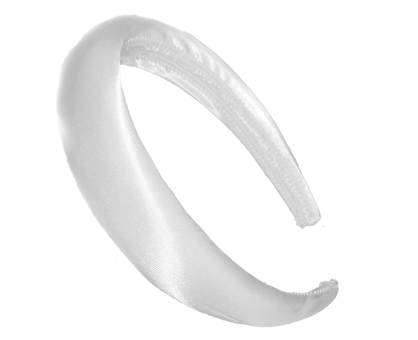 This lovely hair band features a thickly padded satin covering, providing both style and comfort. Its ivory color adds a touch of sophistication to any look.
