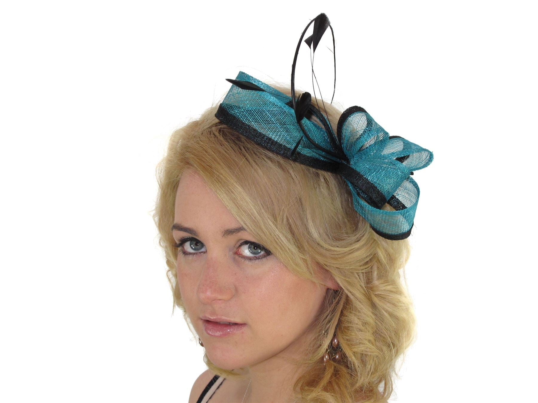 This stunning jade green and black two tone fascinator is the perfect accessory to elevate your outfit for any occasion.