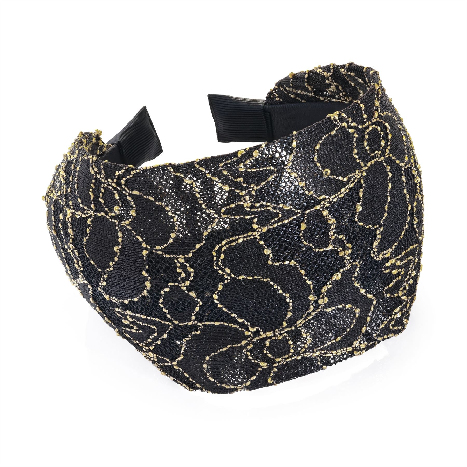 Ladies Large Wide Vintage Gold Lace Flower Plastic Headband Hair Band Boho