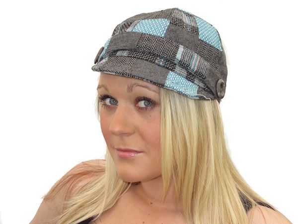 Ladies Women Blue Grey Patchwork Bolton Bakerboy Cap Peak Cap Newsboy Hat