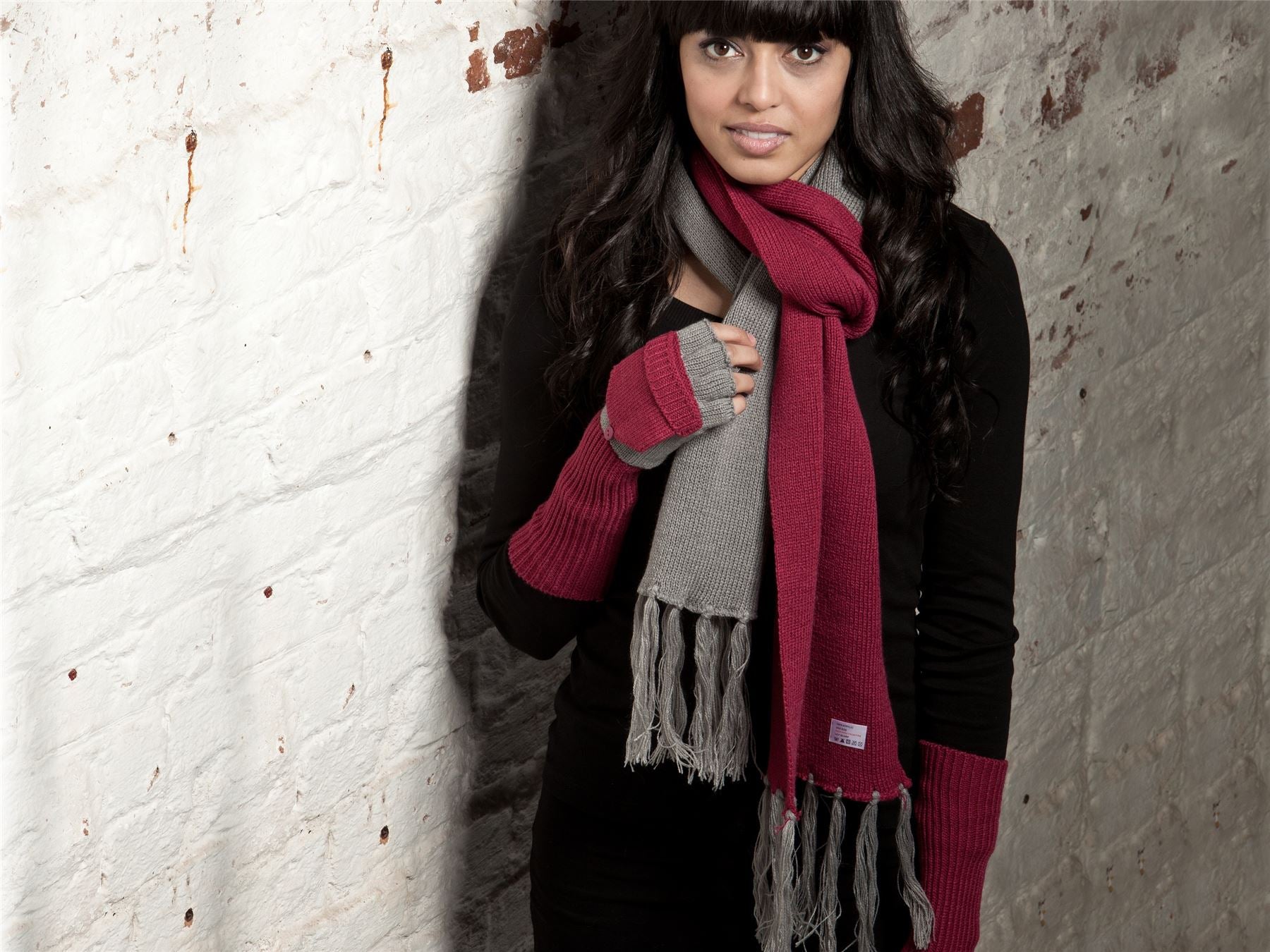 Ladies Women Warm Soft Knitted Pink Grey Colour Block Scarf Neck Warmer