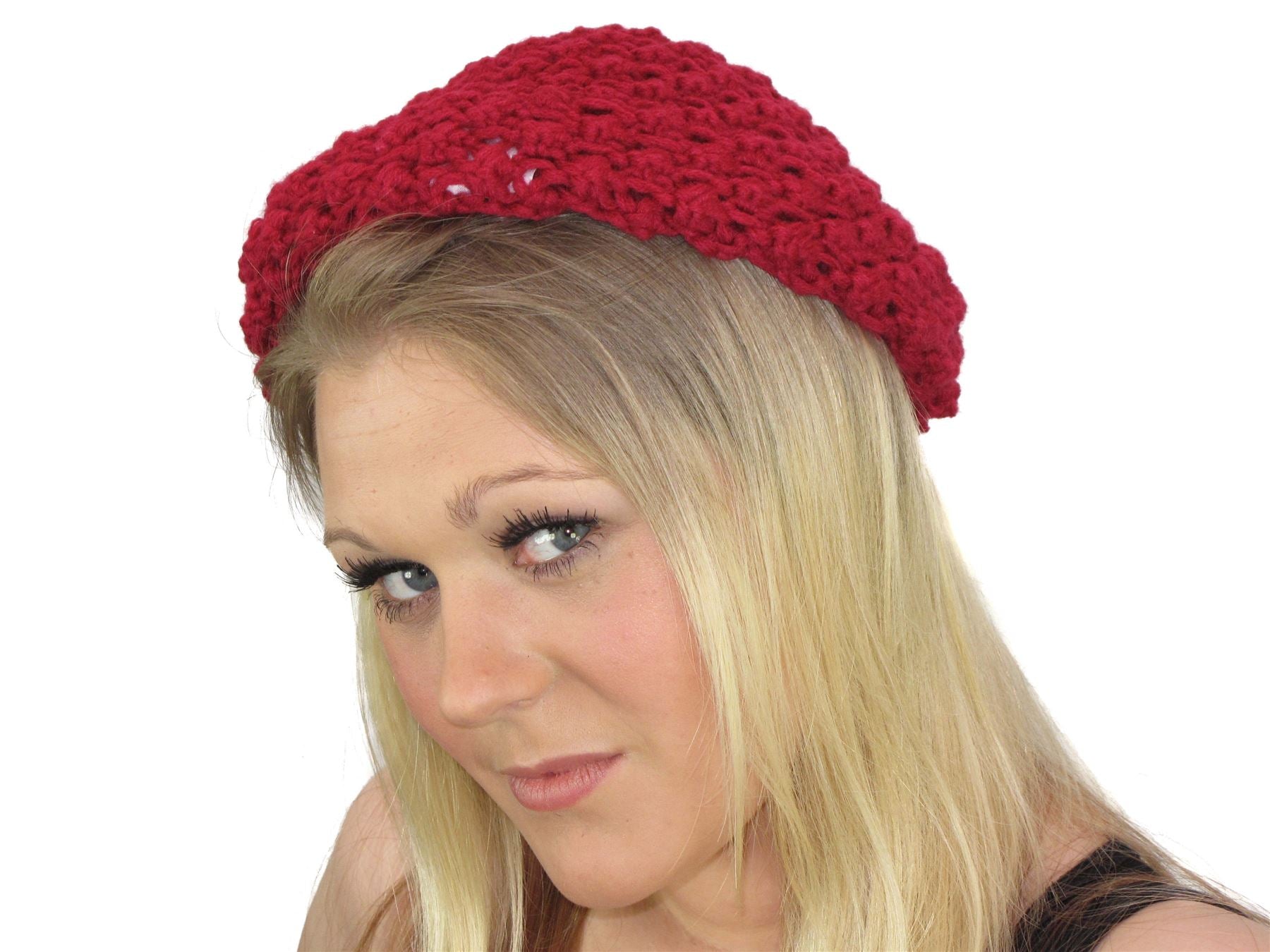 Ladies Womens Soft Warm Winter French Style Burgundy Crochet Beret Hat