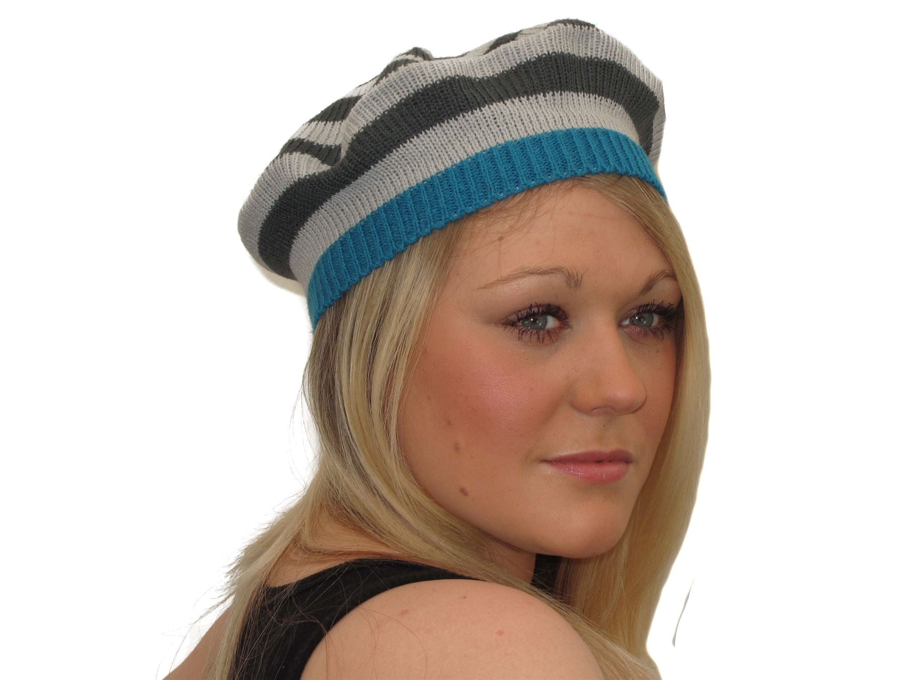 Ladies Womens Soft Warm Winter Grey Teal Blue Knitted French Beret Hat