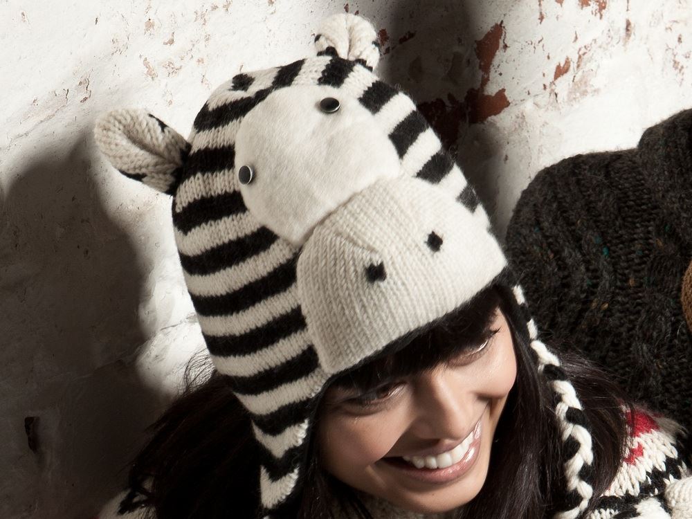 Ladies Womens Warm Fun Zebra Animal Shape Trapper Hat With Fleece Lining