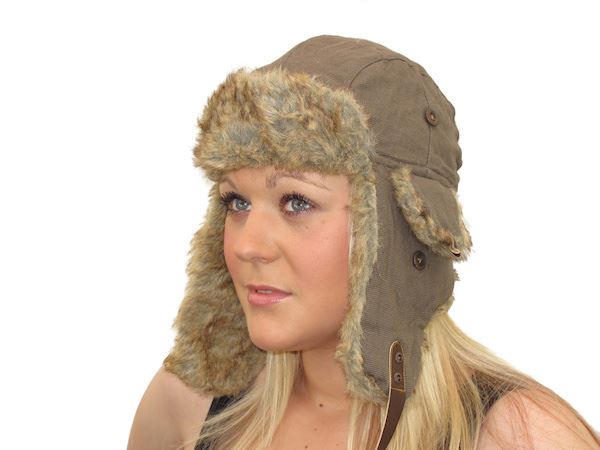Ladies Womens Warm Winter Light Brown Trapper Hat Ear Warmer Faux Fur