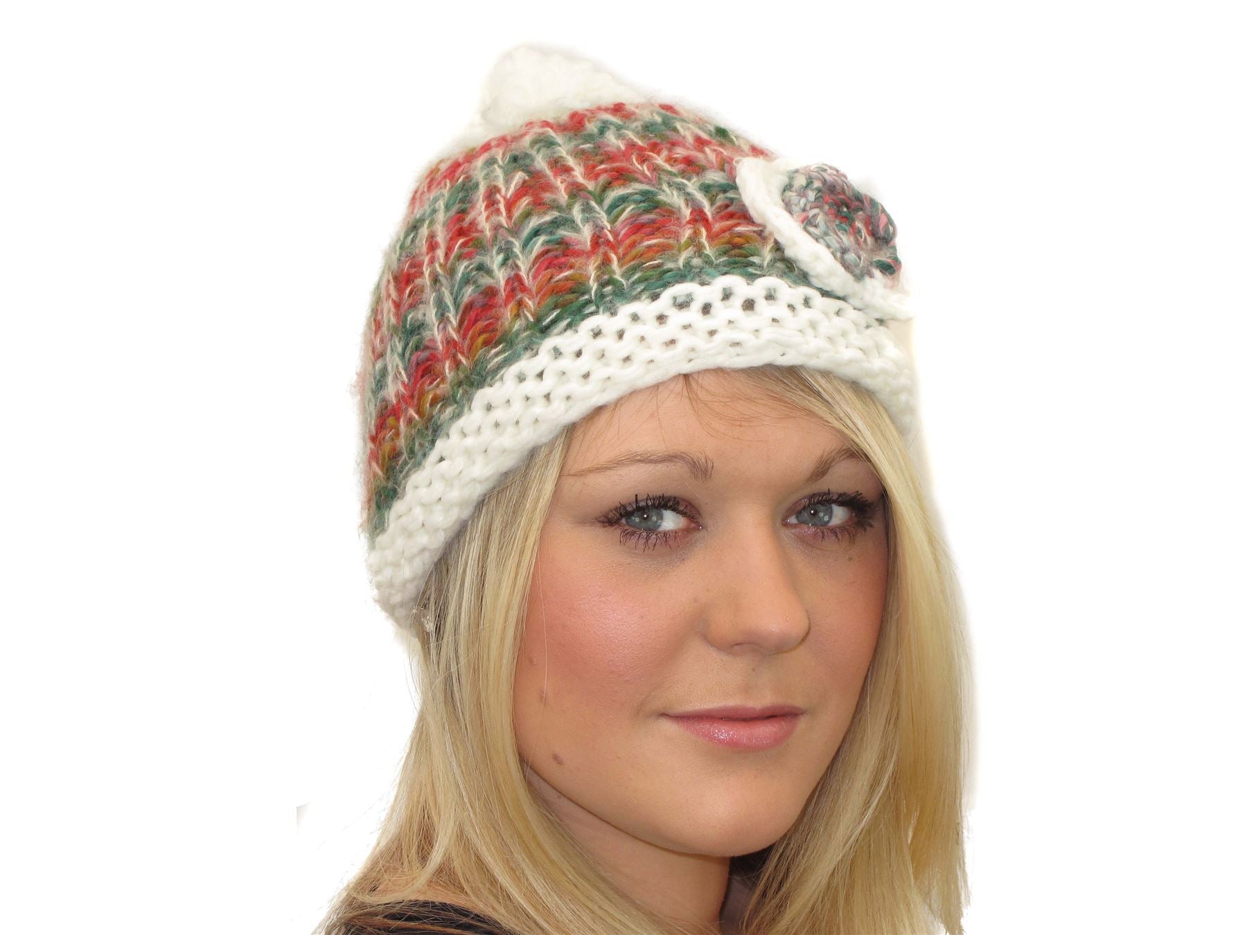 Ladies Womens Warm Winter Thick Knitted Pink Green Mix Beanie Bobble Hat