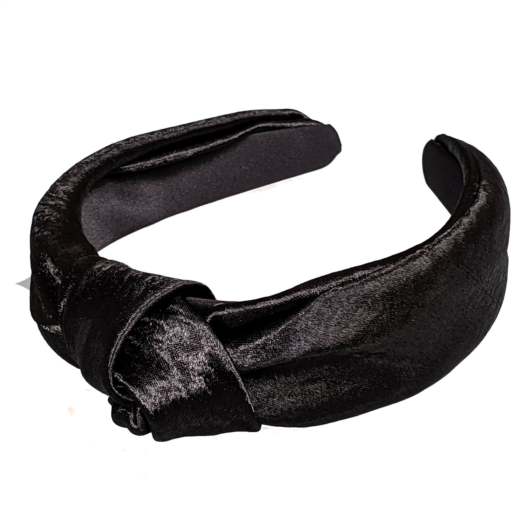 Large Wide Black Crushed Satin Top Knot Twist Plastic Headband Hair Band