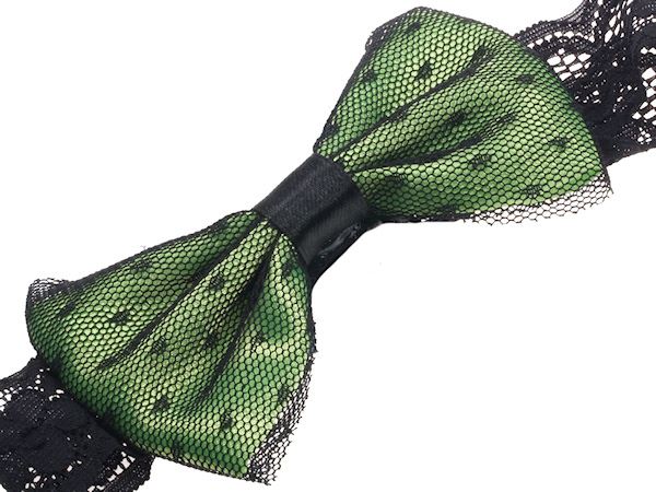 Lime Green Black Bow With Net Stretch Lace Elastic Headband Hair Band
