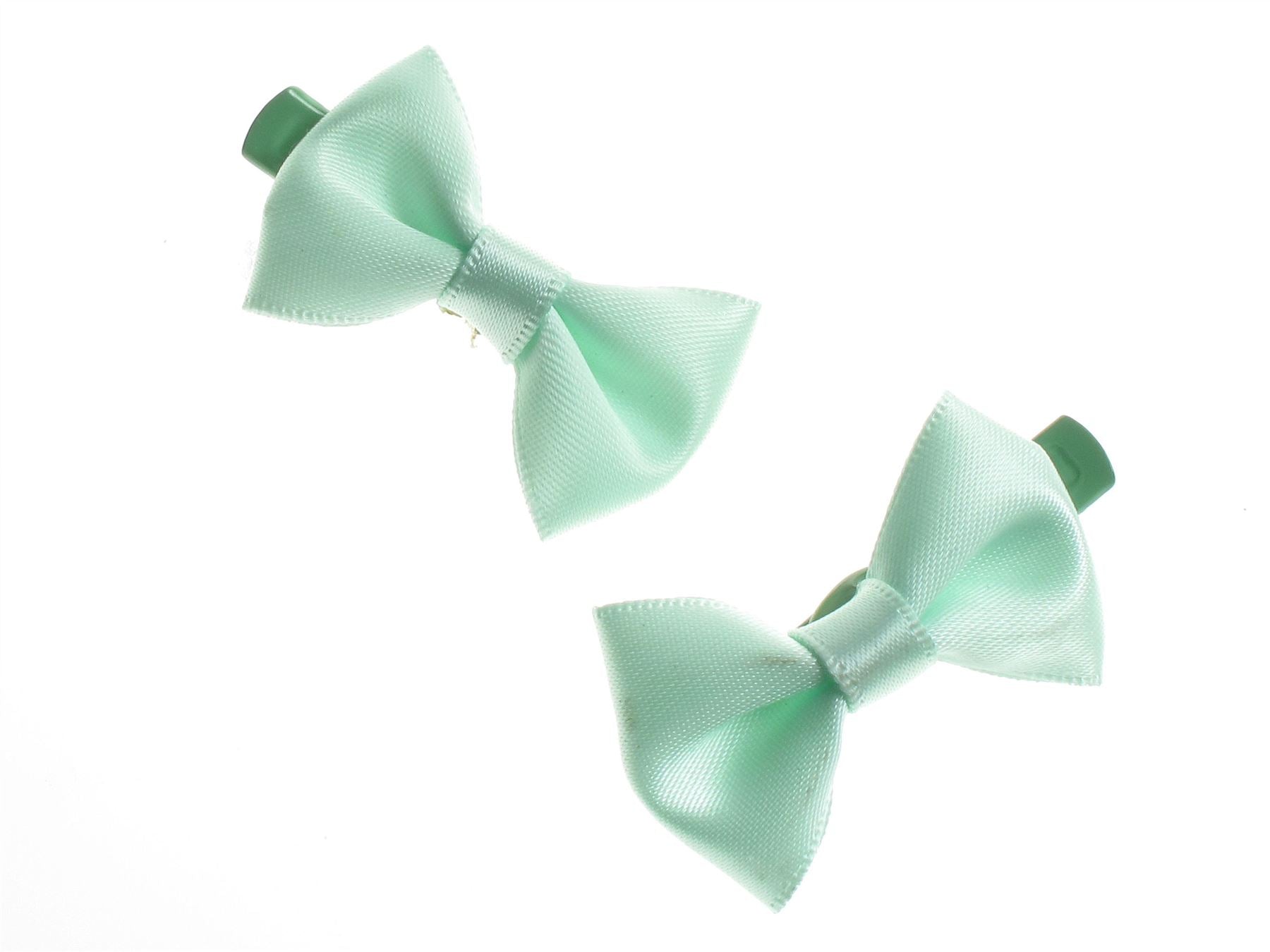 Mini Green Satin Bow Hair Clamp Clips