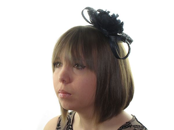 This elegant fascinator is the perfect accessory for your special occasions. Crafted from stiffened sinamay, it features a stunning central feather-formed flower and stylish loops that add a touch of sophistication.