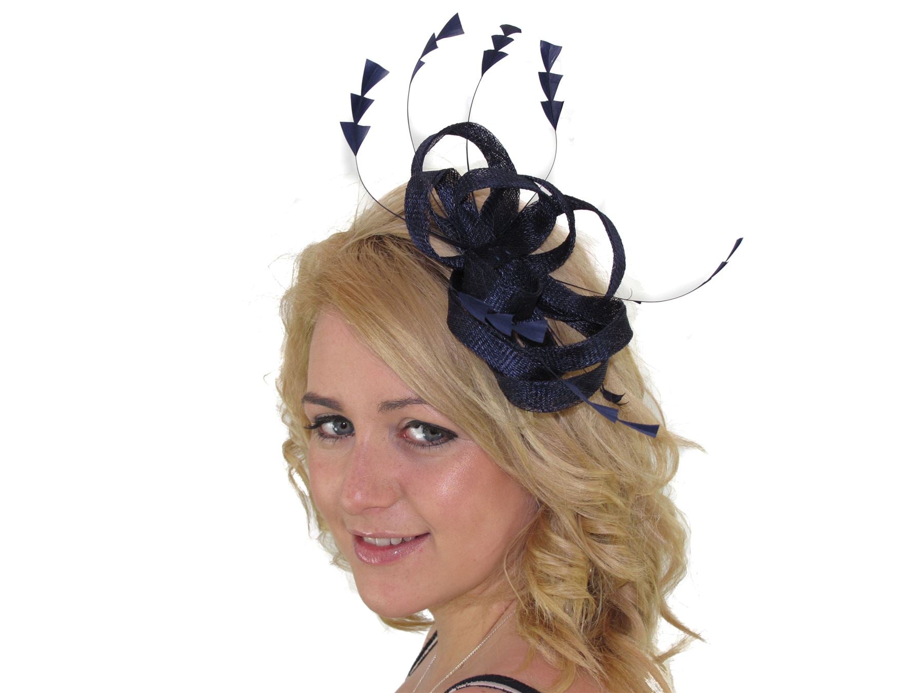 Elevate your style with this elegant Navy Blue Sinamay Loops Fascinator. Perfect for adding a touch of sophistication to any outfit, this fascinator combines classic design with modern flair.