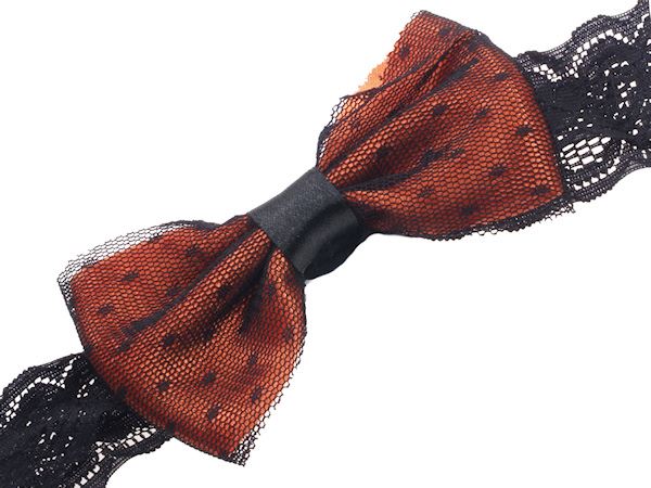 Orange Black Bow With Net Stretch Lace Elastic Headband Bandeau Hair Band