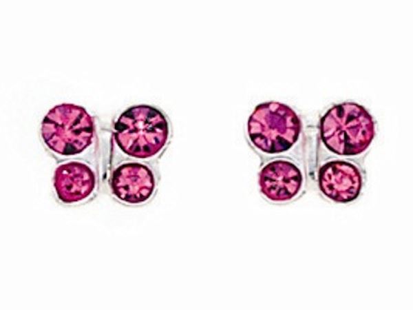 Pink Crystal Butterfly Stud Earrings Ladies Women Jewellery