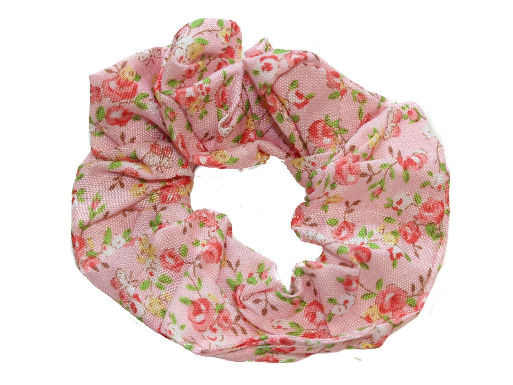 Charming Pink Ditsy Rose Print Hair Scrunchie