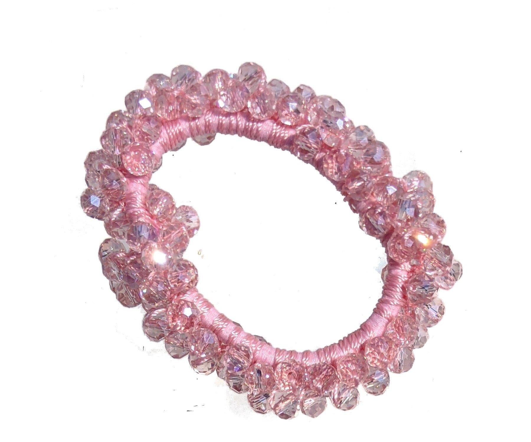 Elevate your hair game with our chic Pink Faceted Glass Bead Hair Scrunchie. Designed for both fashion and function, this thick, endless style hair elastic combines glossy, faceted glass beads for a touch of elegance.