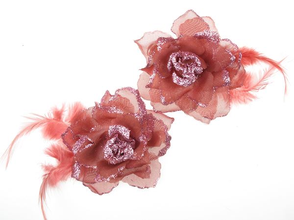 Pink Glitter Rose Flower Hair Clips/Corsages