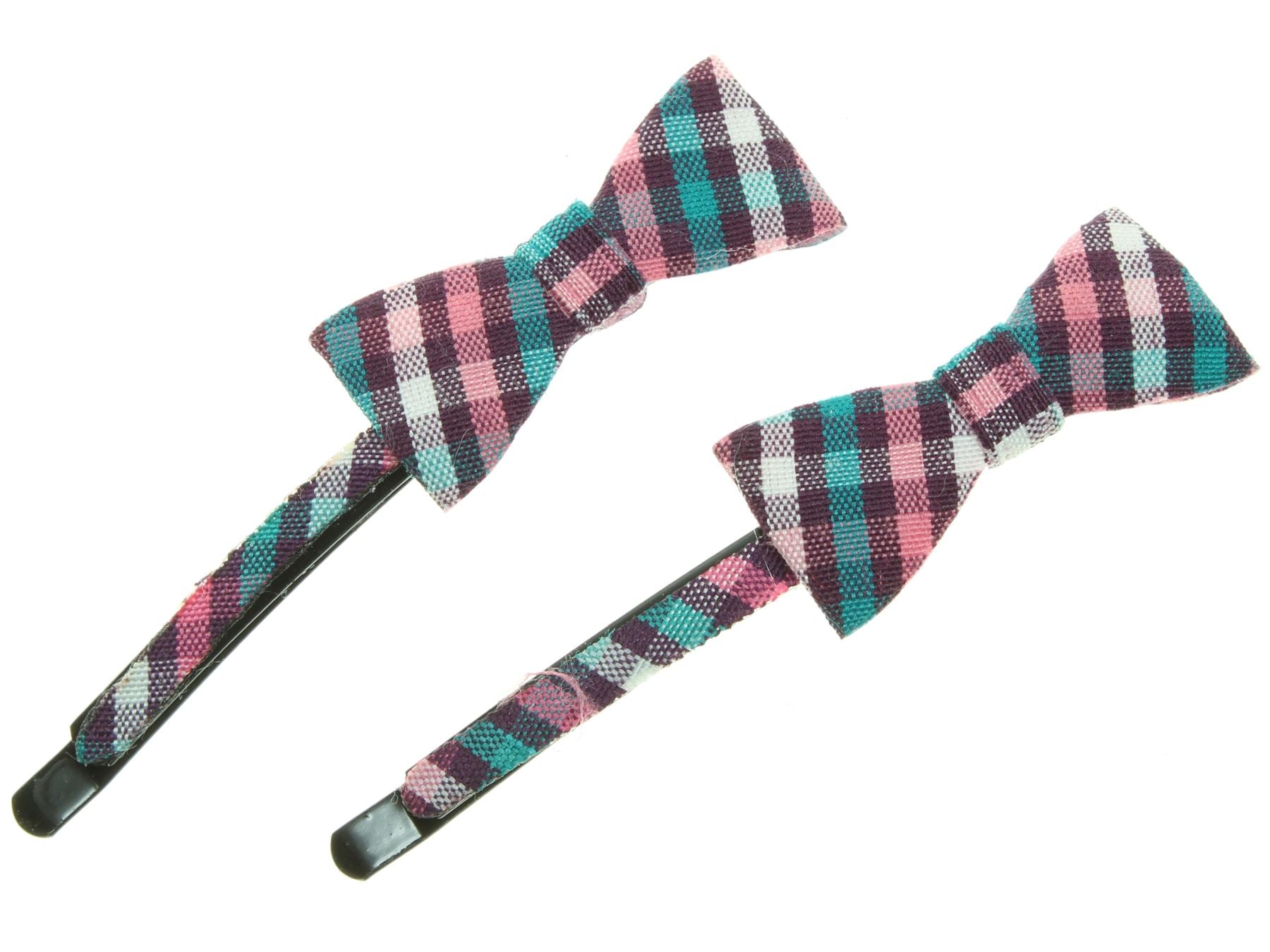 Pink/Green Gingham Bow Hair Slide Hair Clip Grips Hair Accessory
